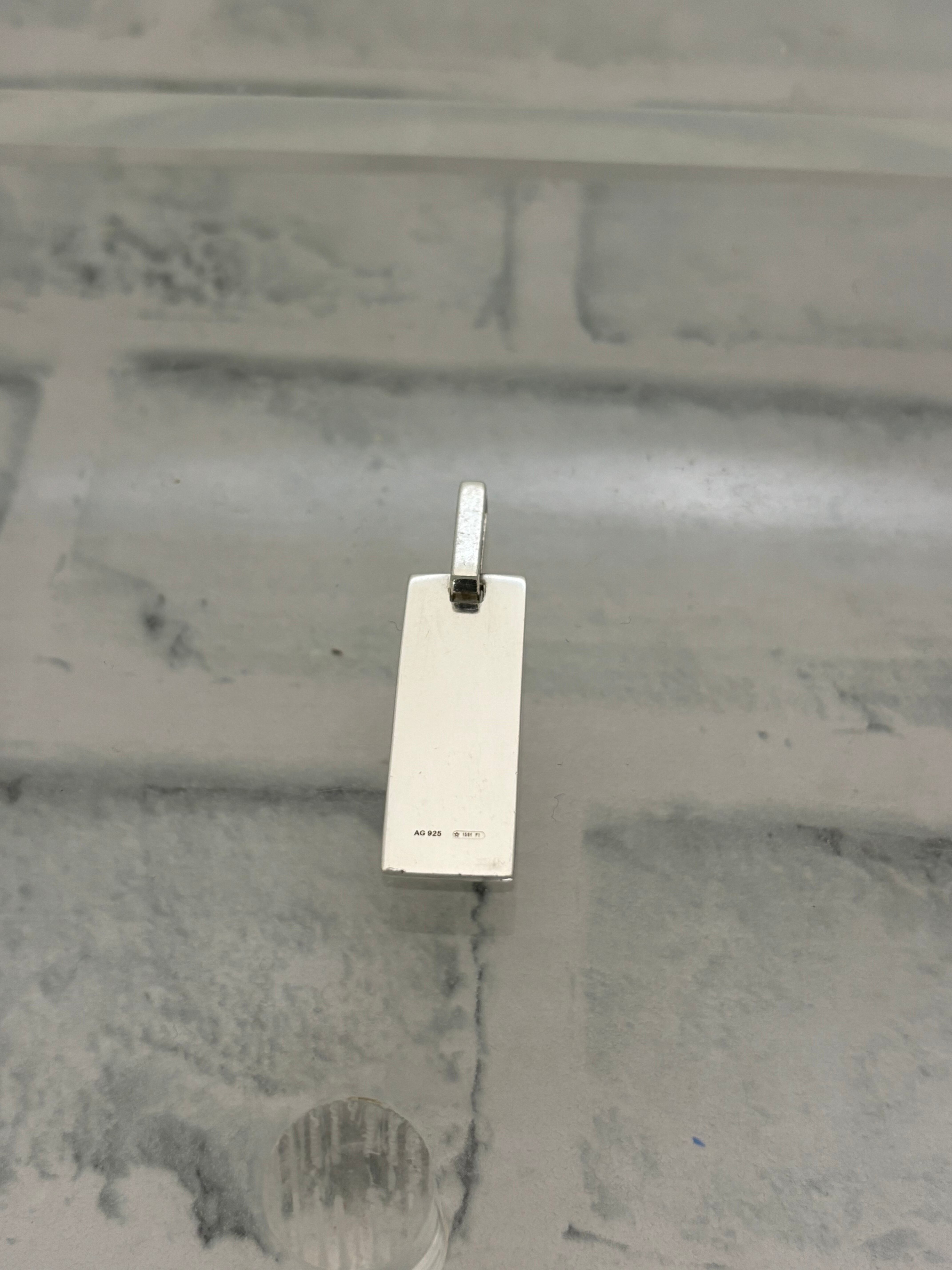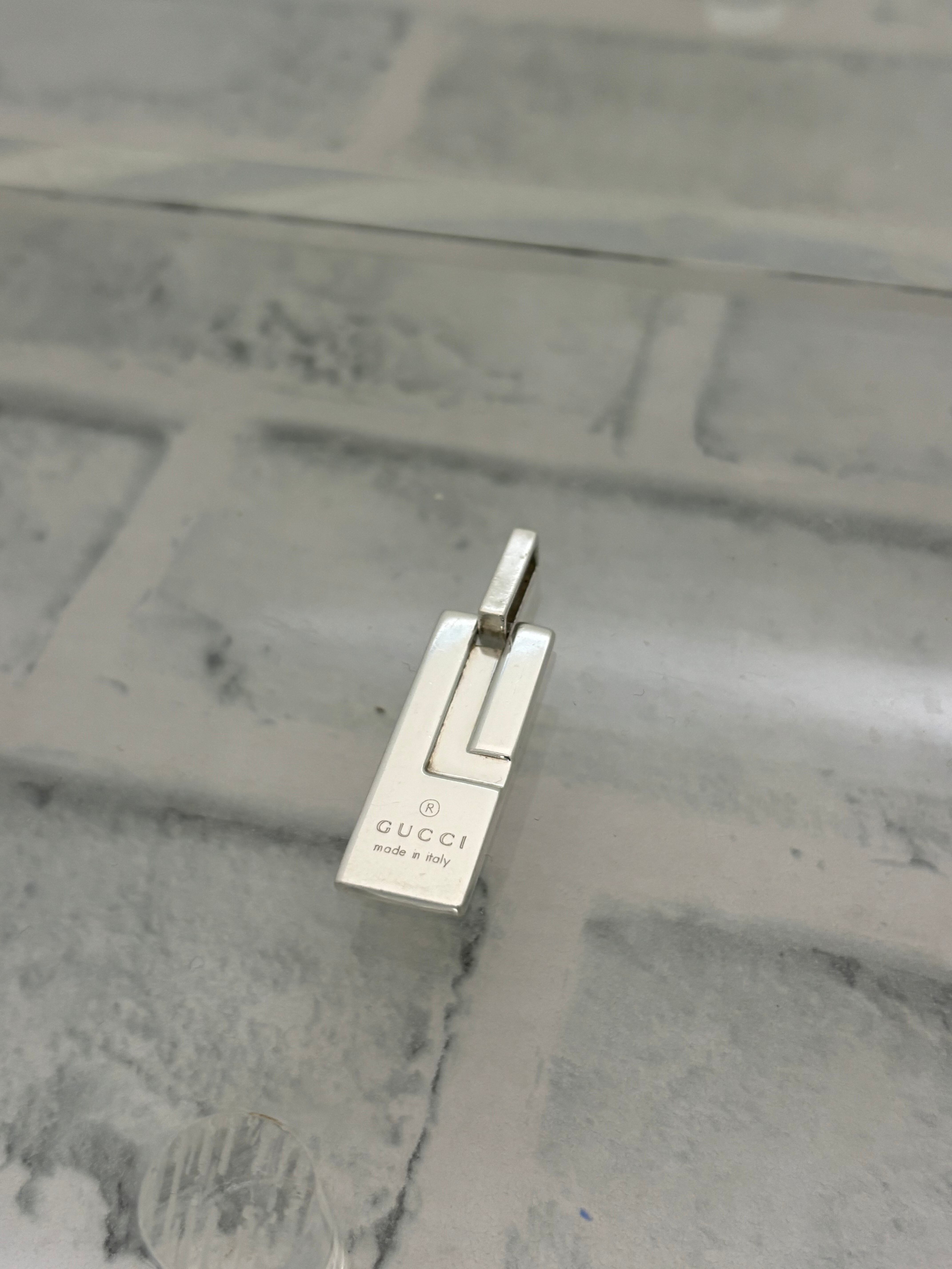 プレートデザインのネックレストップ。グッチらしい角張ったエッジのあるデザインにロゴ刻印をあえてデザインに取り入れてるのが特徴的。