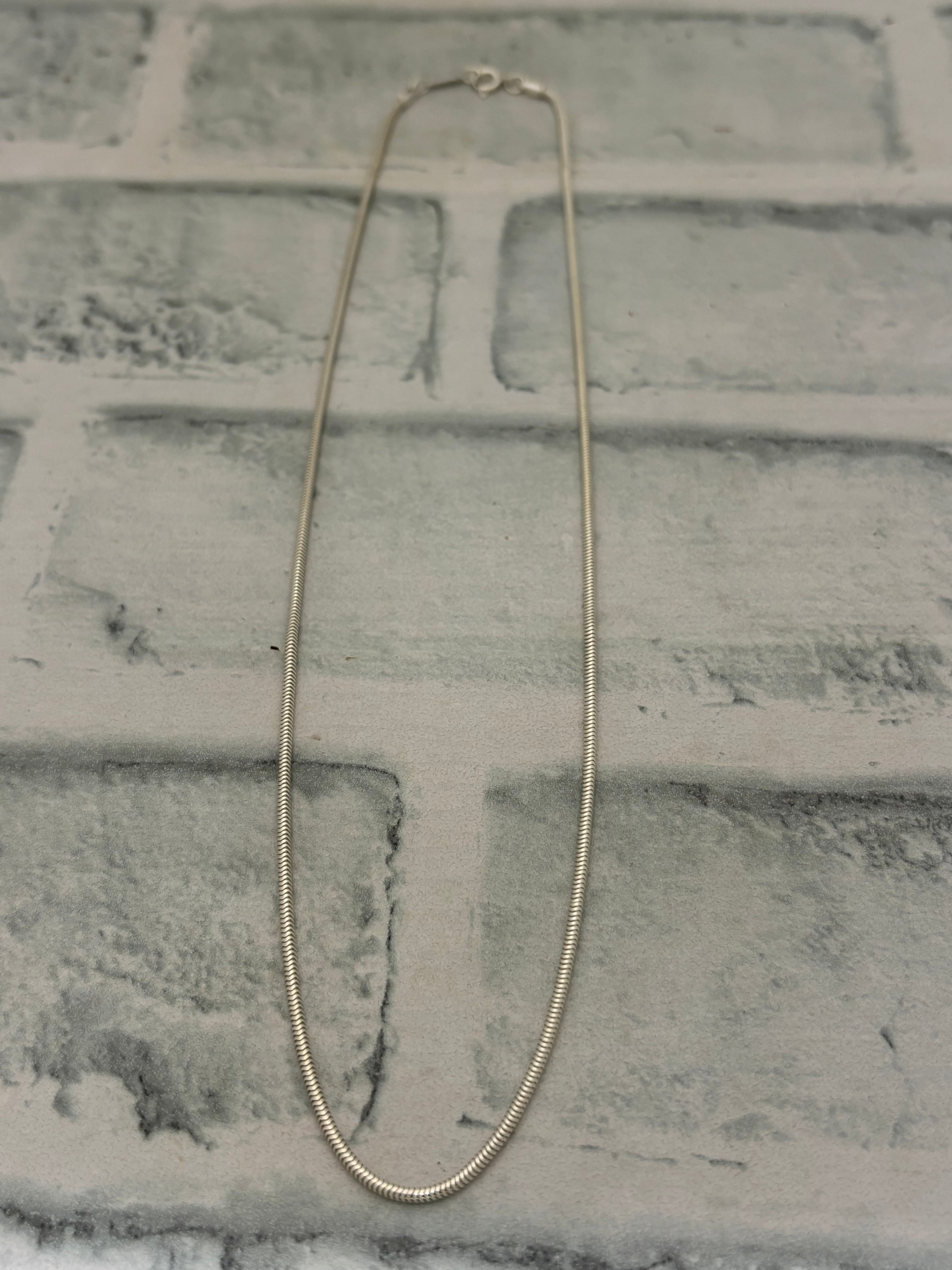 蛇腹をモチーフにしたデザインのチェーン。均一にデザインされた丸味のある上品な印象が人気のアイテム。イタリアンシルバー等のヴィンテージジュエリーにて昔から多様されているデザインです。