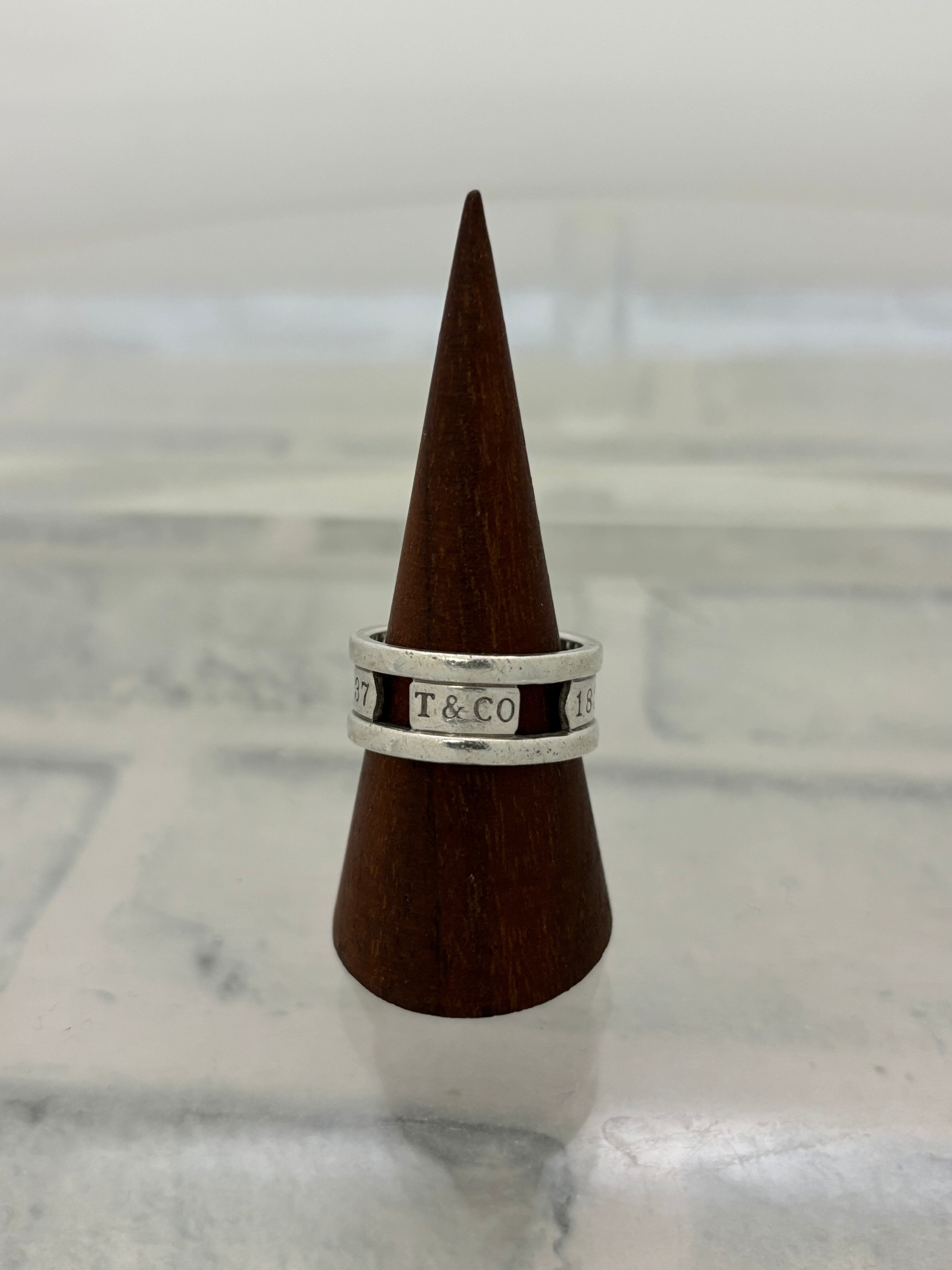 1837シリーズのリング。幅広のバンドリングにシリーズ共通の『1837』 『925』 『T&CO』がデザインされています。オープンデザインの洗練された雰囲気が特徴的。