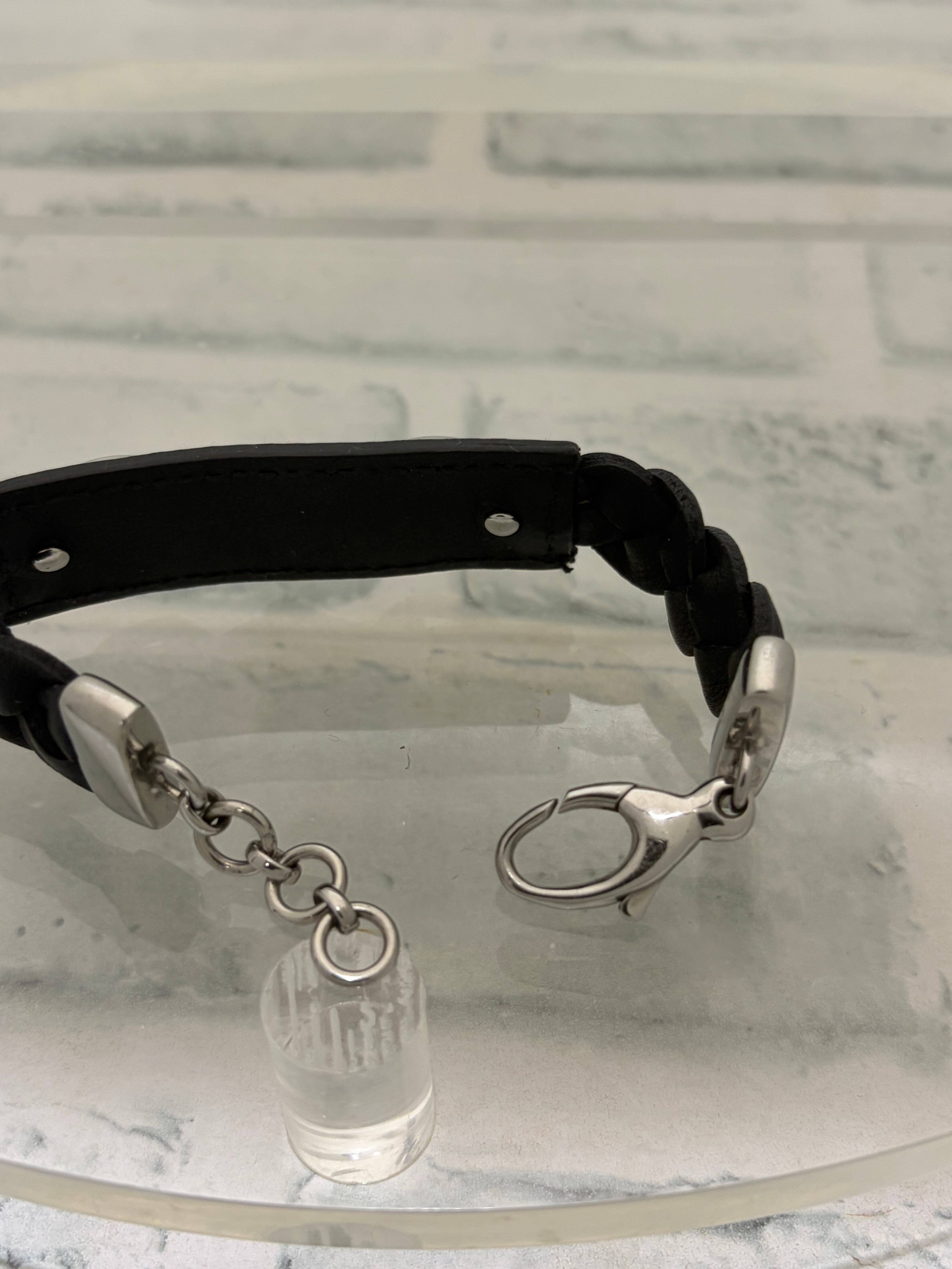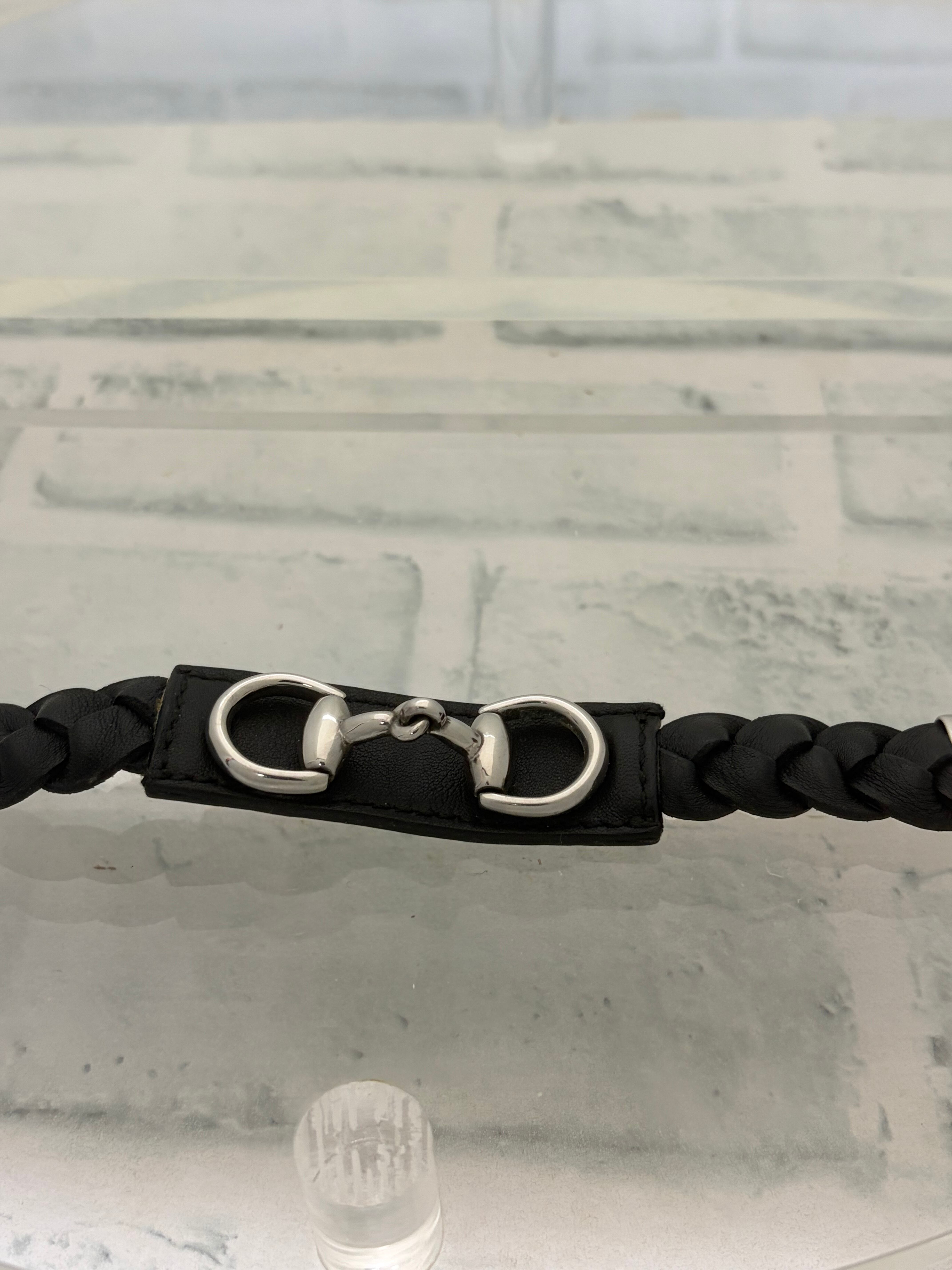 編み込みのレザーブレスレットをベースにホースビットがデザインされたアイテム。ホースビットは馬具をモチーフにしており、古いグッチで多様されていた人気デザインになります。