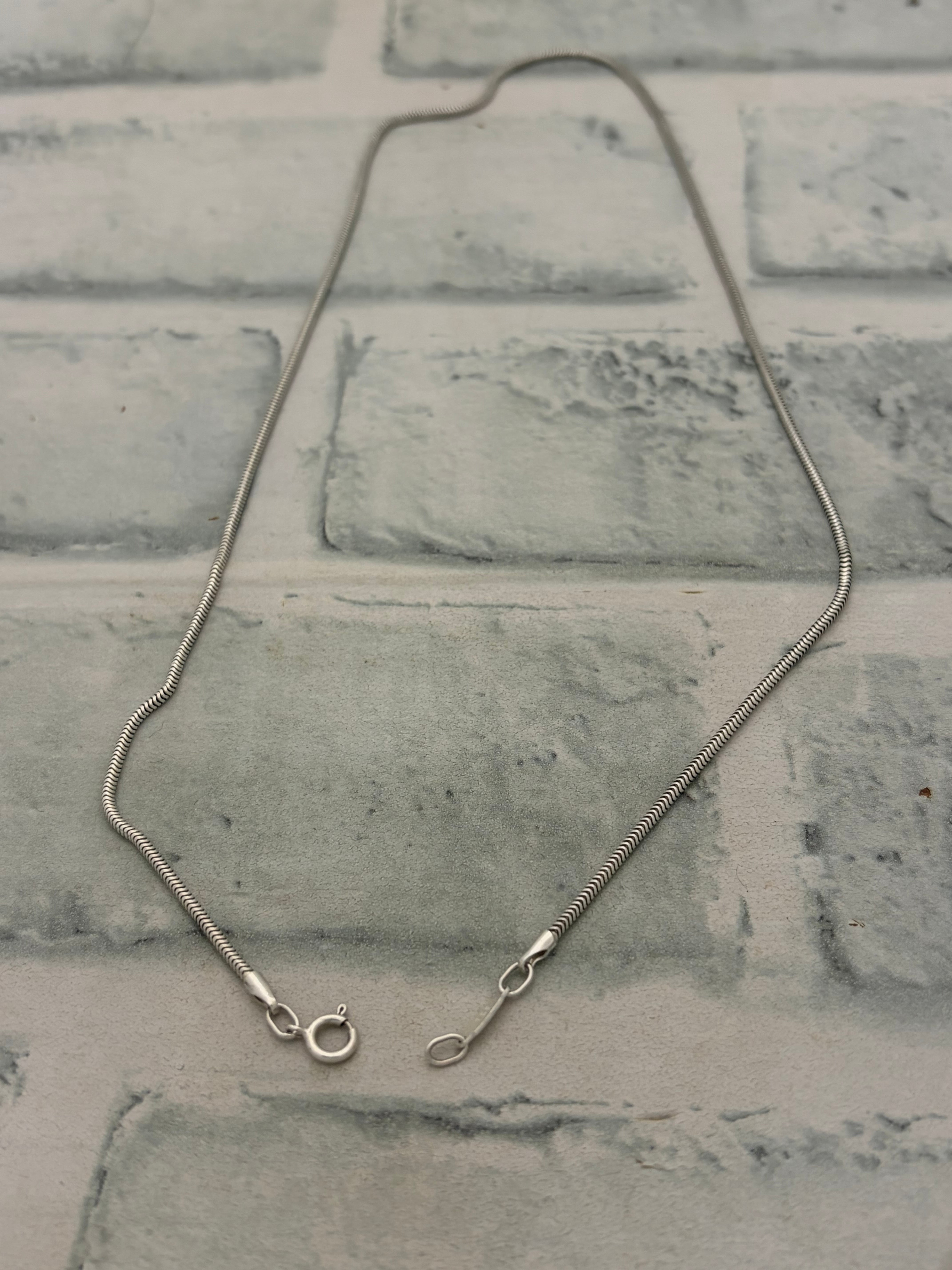 蛇腹をモチーフにしたデザインのチェーン。均一にデザインされた丸味のある上品な印象が人気のアイテム。イタリアンシルバー等のヴィンテージジュエリーにて昔から多様されているデザインです。