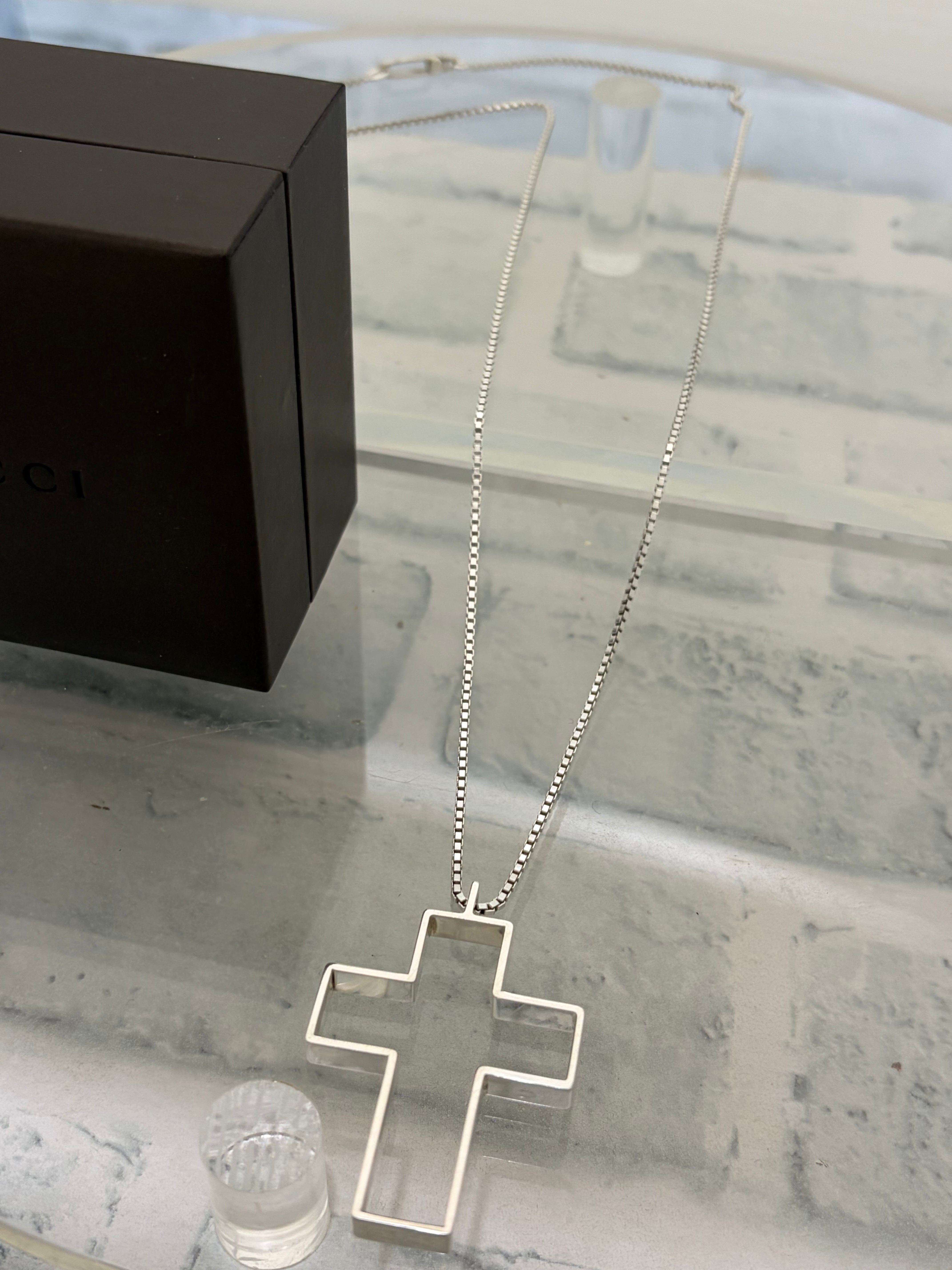 美品 オールドグッチ GUCCI オープンクロス ベネチアンチェーン ネックレス