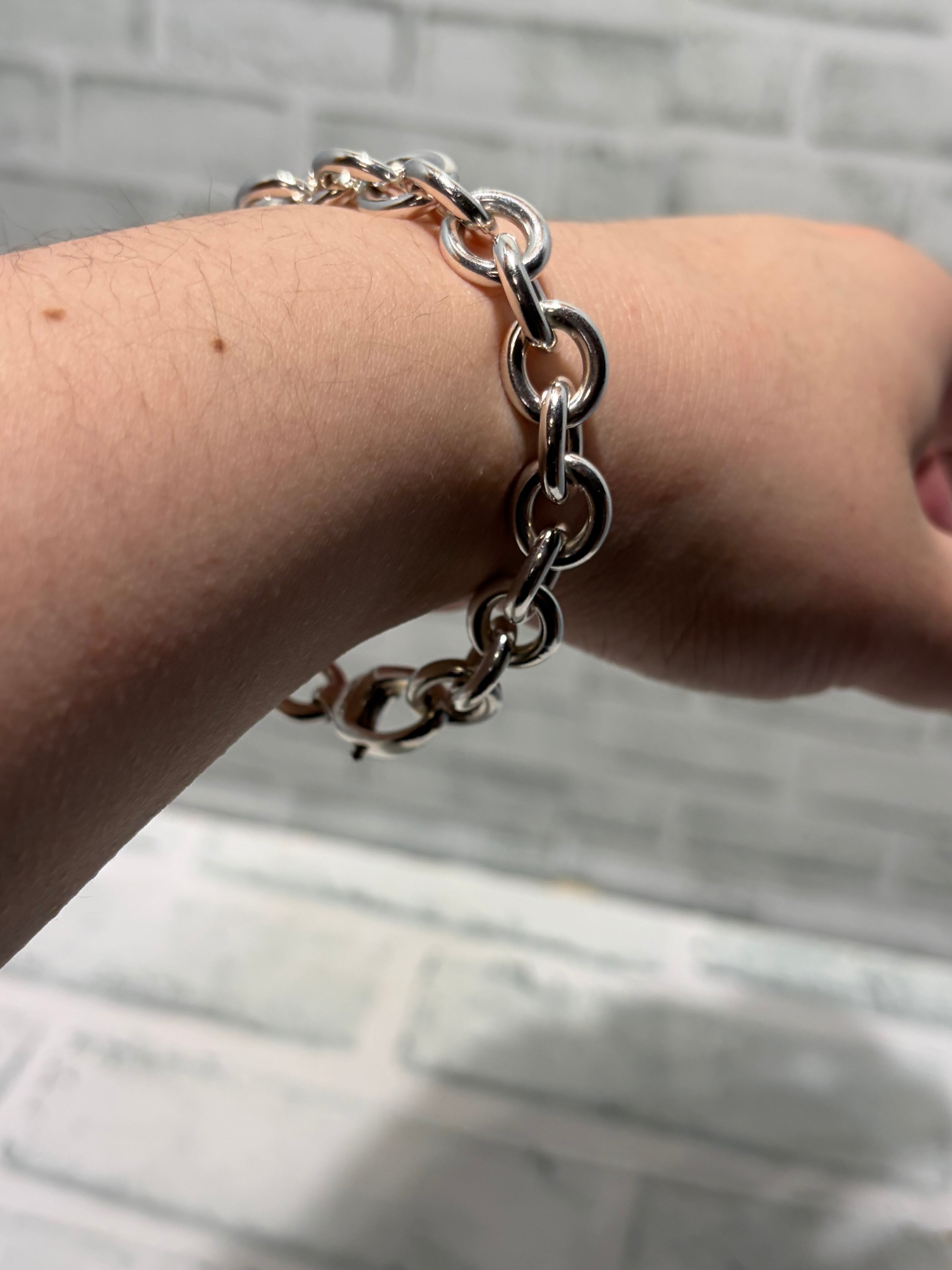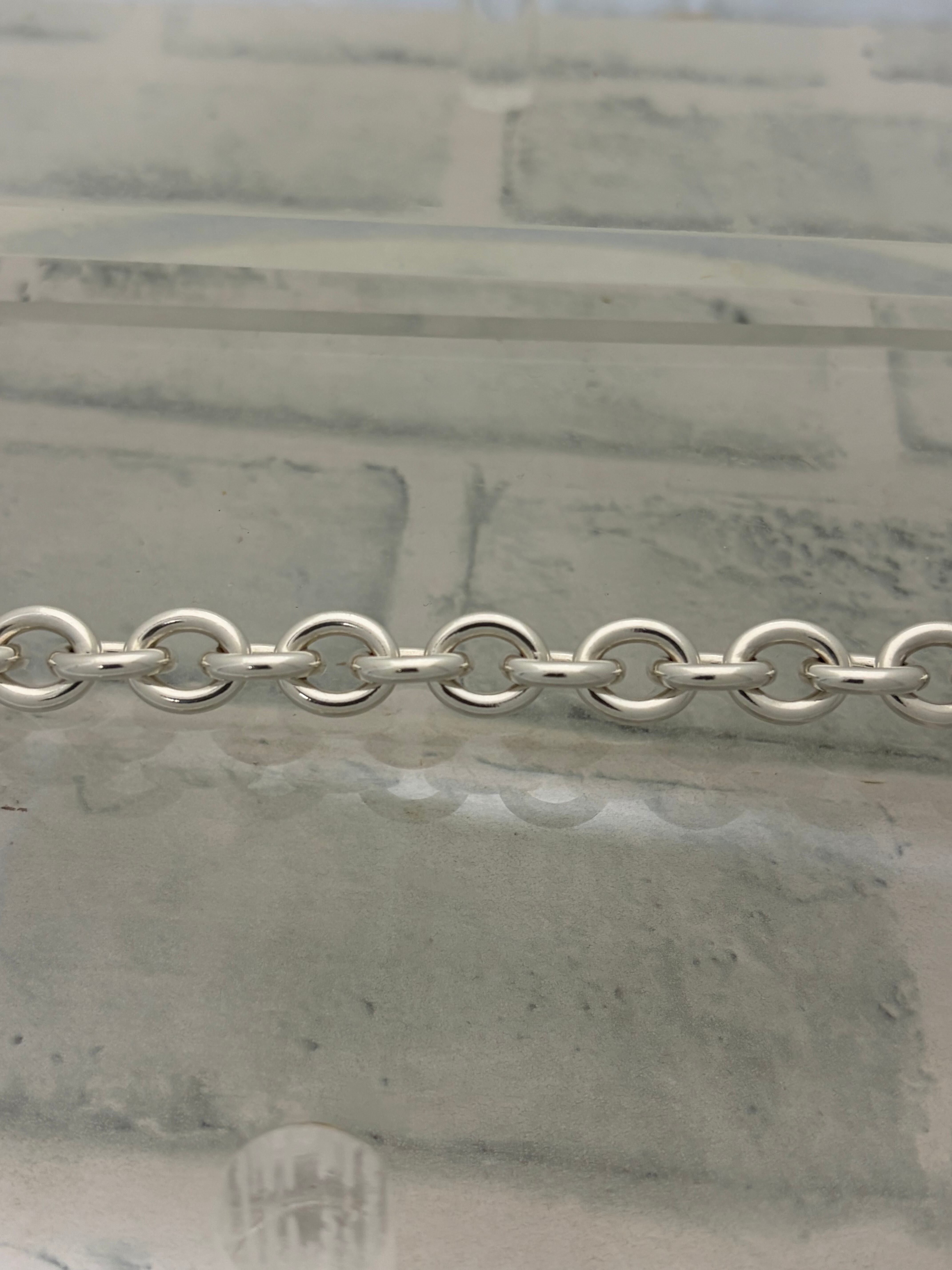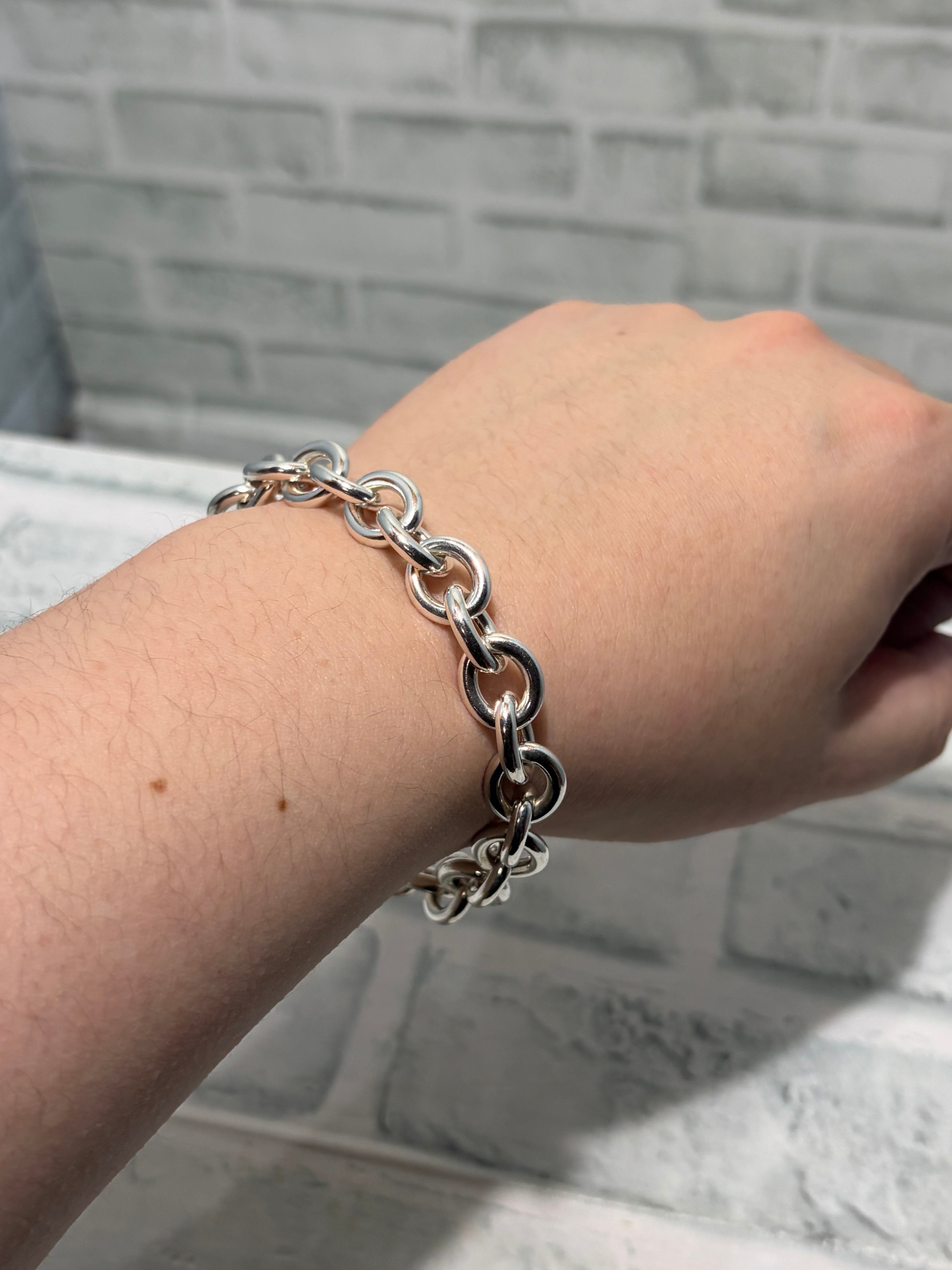 丸みを帯びた肉厚のコマが特徴的なリンクチェーンブレスレット。イタリアンシルバーを元にしたデザインが多いティファニーやグッチが得意とするデザインです。