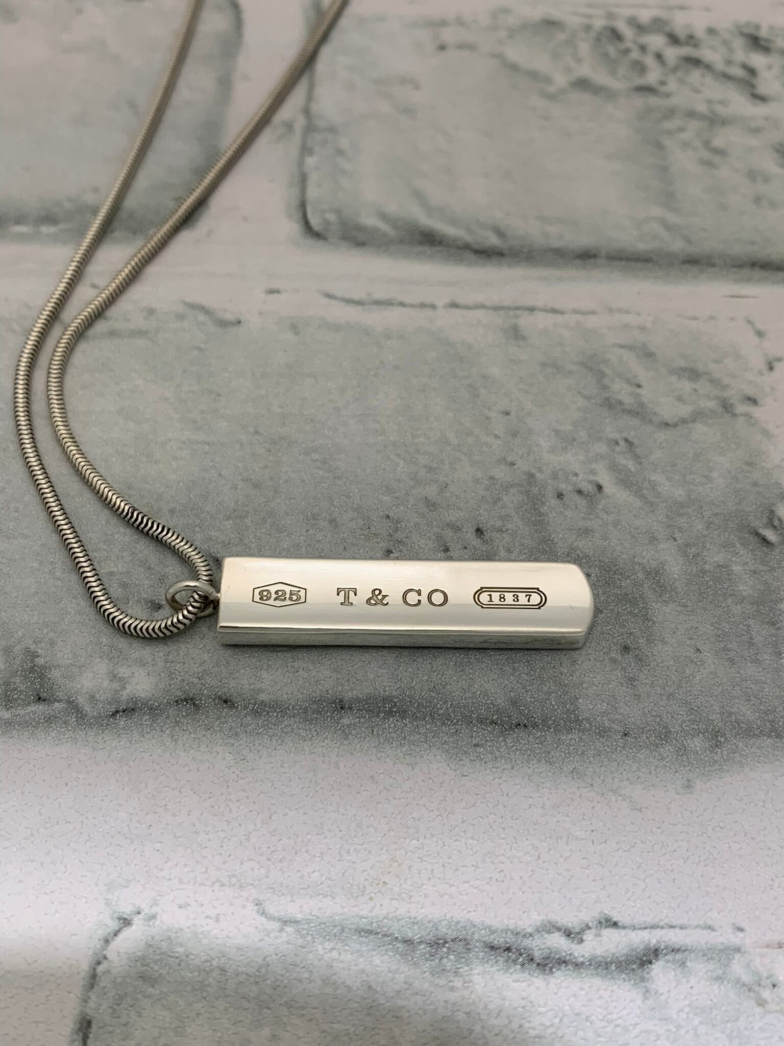 1837シリーズ共通の1837、925、T&COが刻印されたバーデザインのネックレス。スネークチェーンのデザインも相まって上品な印象のあるアイテムです。