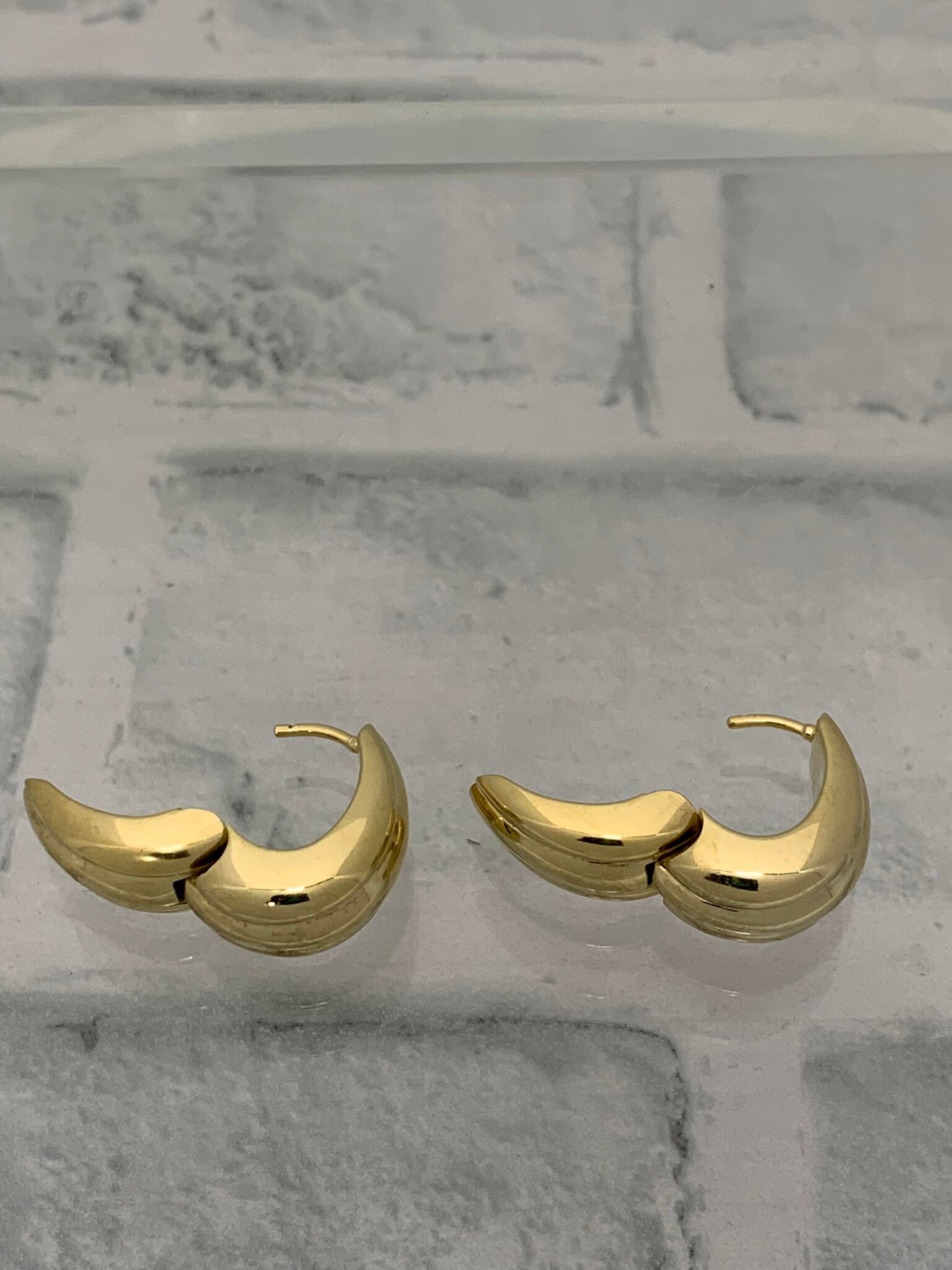 ふっくらと丸みのあるモダンデザインにラインが施されたピアス。ブロックアイスが溶け、曲線的で光沢のある形状になることからインスピレーションを得たものです。