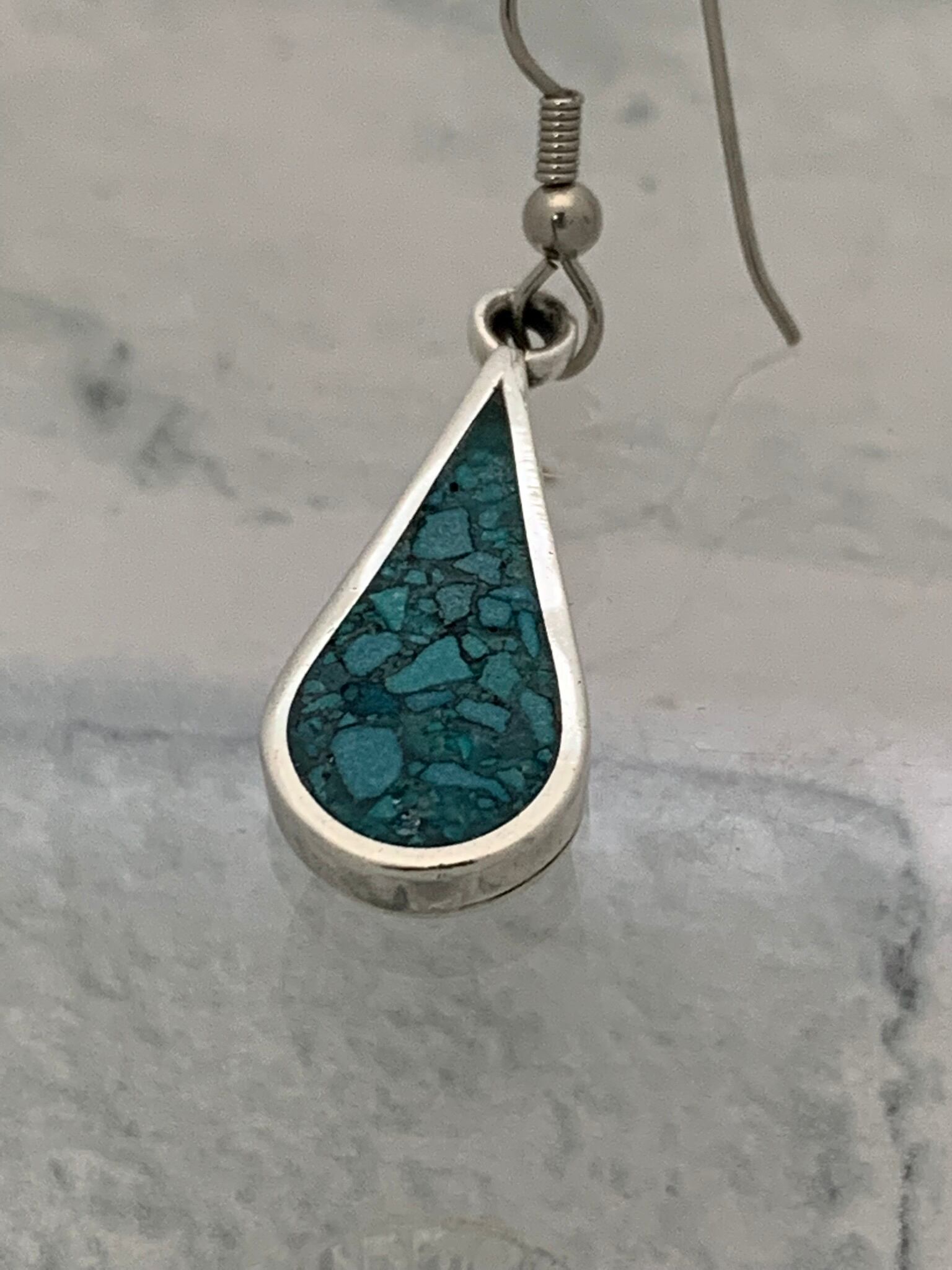 インディアンジュエリーが得意とするインレイワークのターコイズがデザインされたティアドロップピアス。