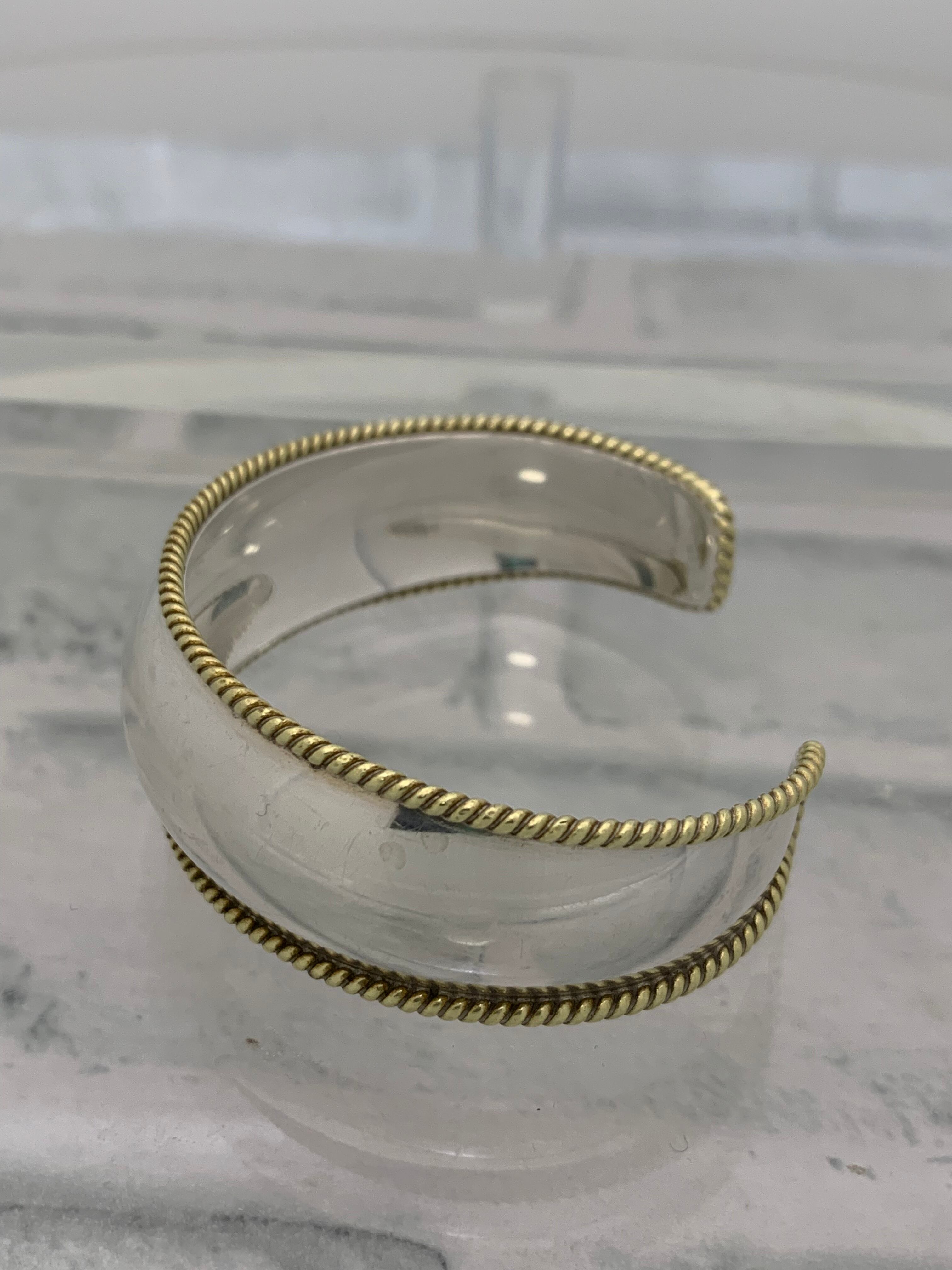 ぷっくりとしたシルエットが特徴的なカフバングルのフチにヴィンテージジュエリーではお馴染みのロープワークが施されたアイテム。