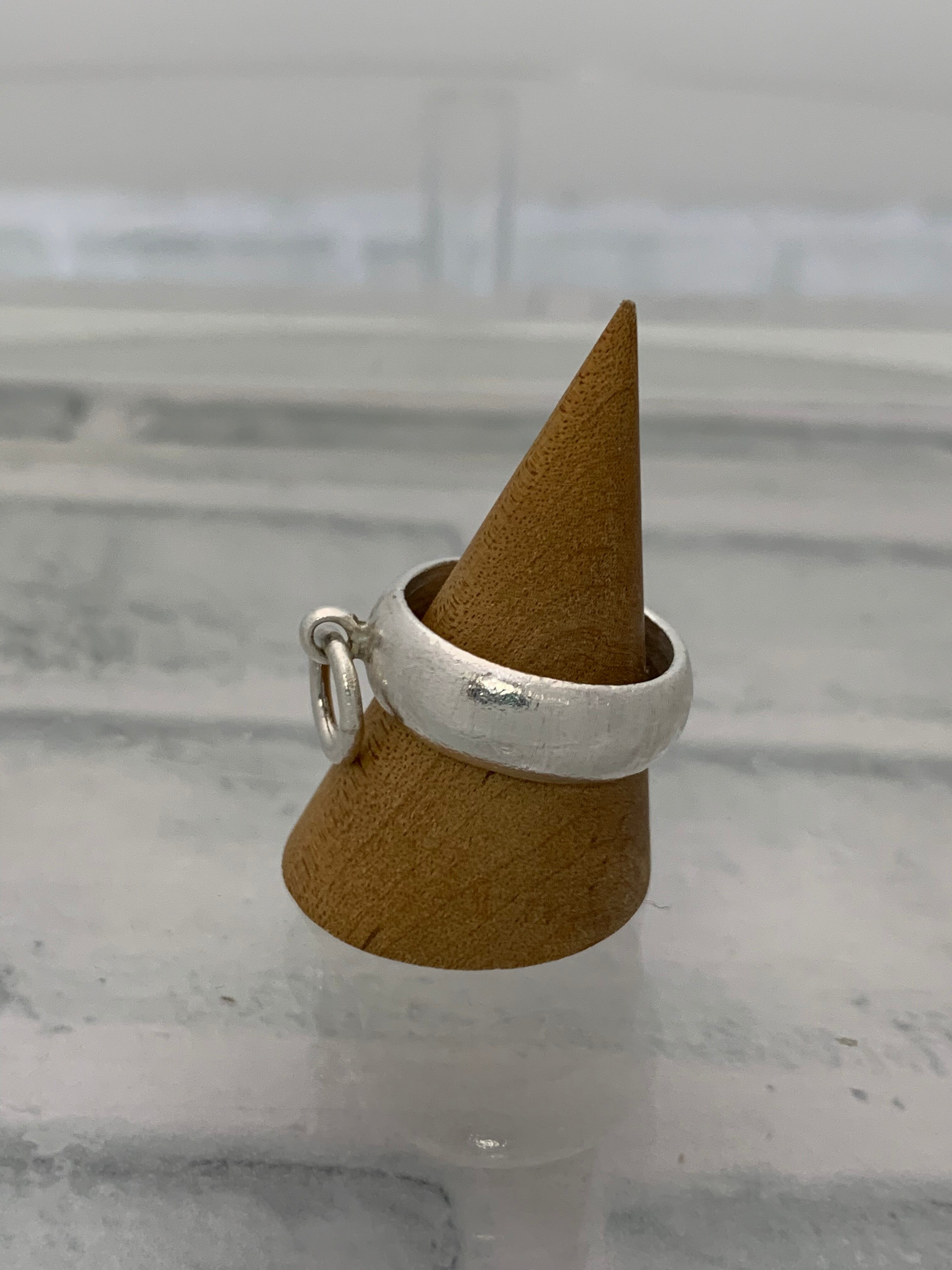 リングの幅が均一なデザインなので、実寸のサイズより1〜2号くらい小さい指の着用がオススメです。