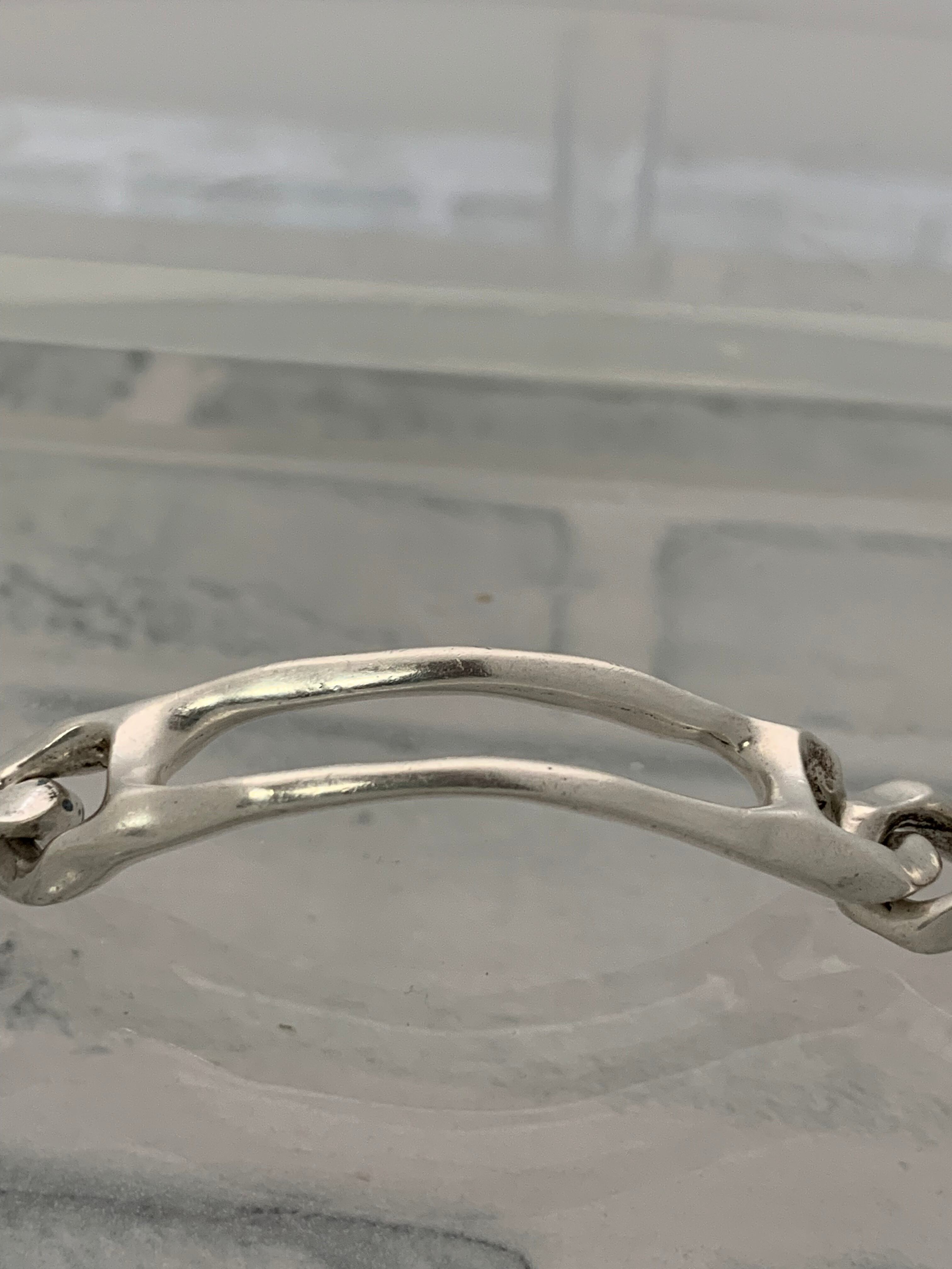 イギリスシルバーらしいシンプルで頑丈な雰囲気に、オープンデザインの柔らかいモダン仕様が合わさった絶妙なバランスのアイテムです。