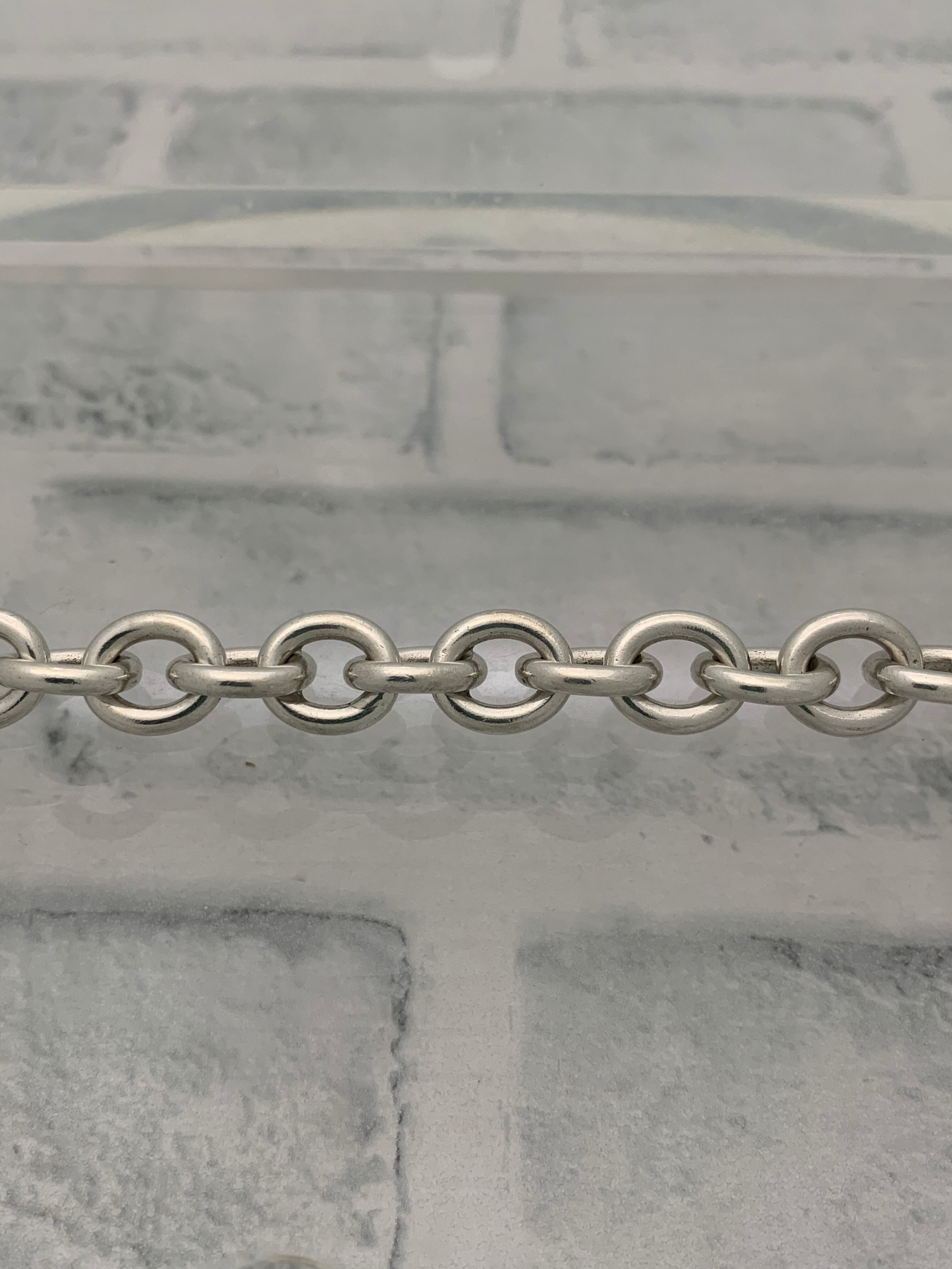 丸みを帯びた肉厚のコマが特徴的なチェーンブレスレット。イタリアンシルバーを元にしたデザインが多いティファニーやグッチが得意とするデザインです。