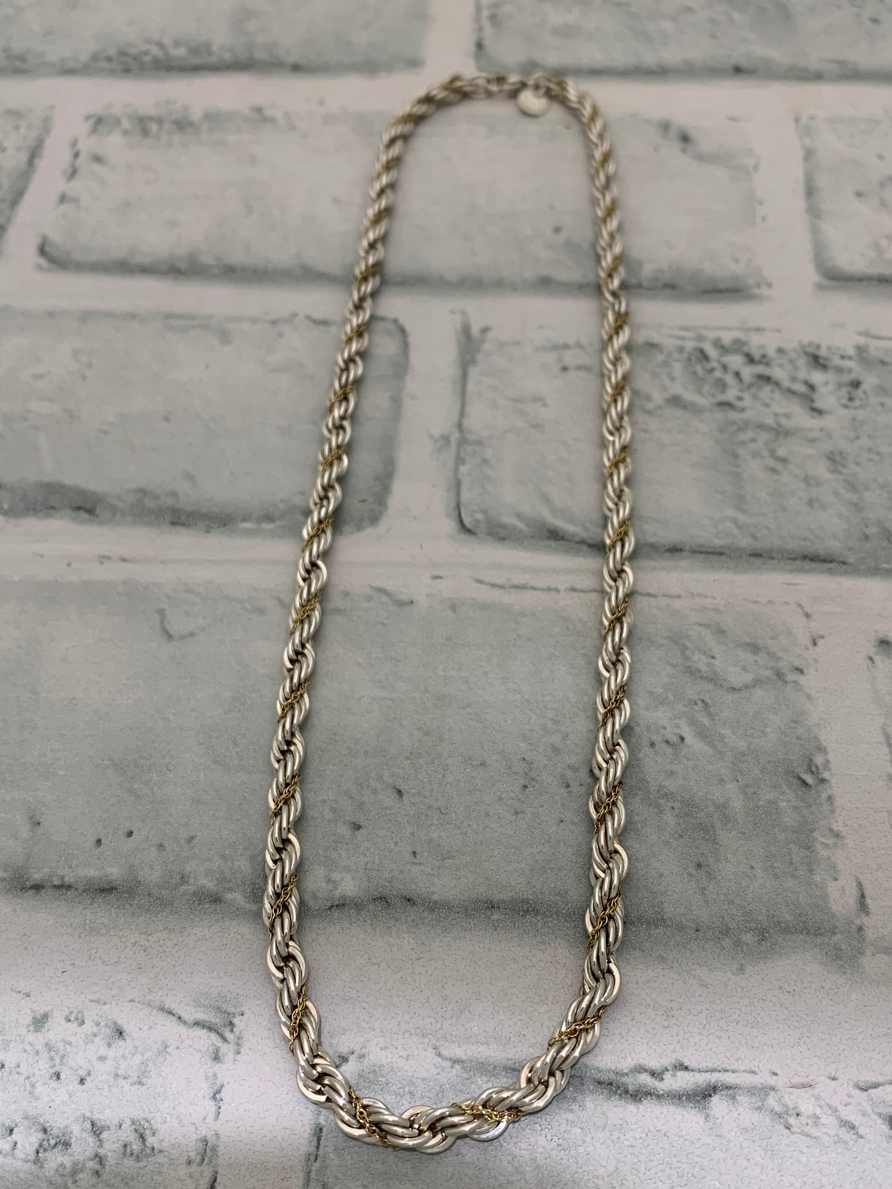 シルバーのロープチェーンに18金でデザインされた細身のチェーンが巻き付いたラグジュアリーなアイテム。ヴィンテージティファニーの中でも特に人気の一品になります。
