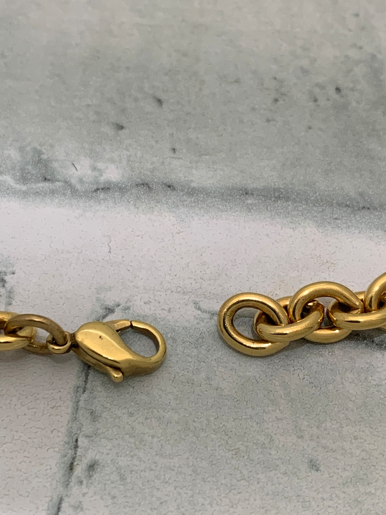 ティファニー等で人気の高いリンクチェーンに、大振りのホースビットモチーフがデザインされたネックレス。