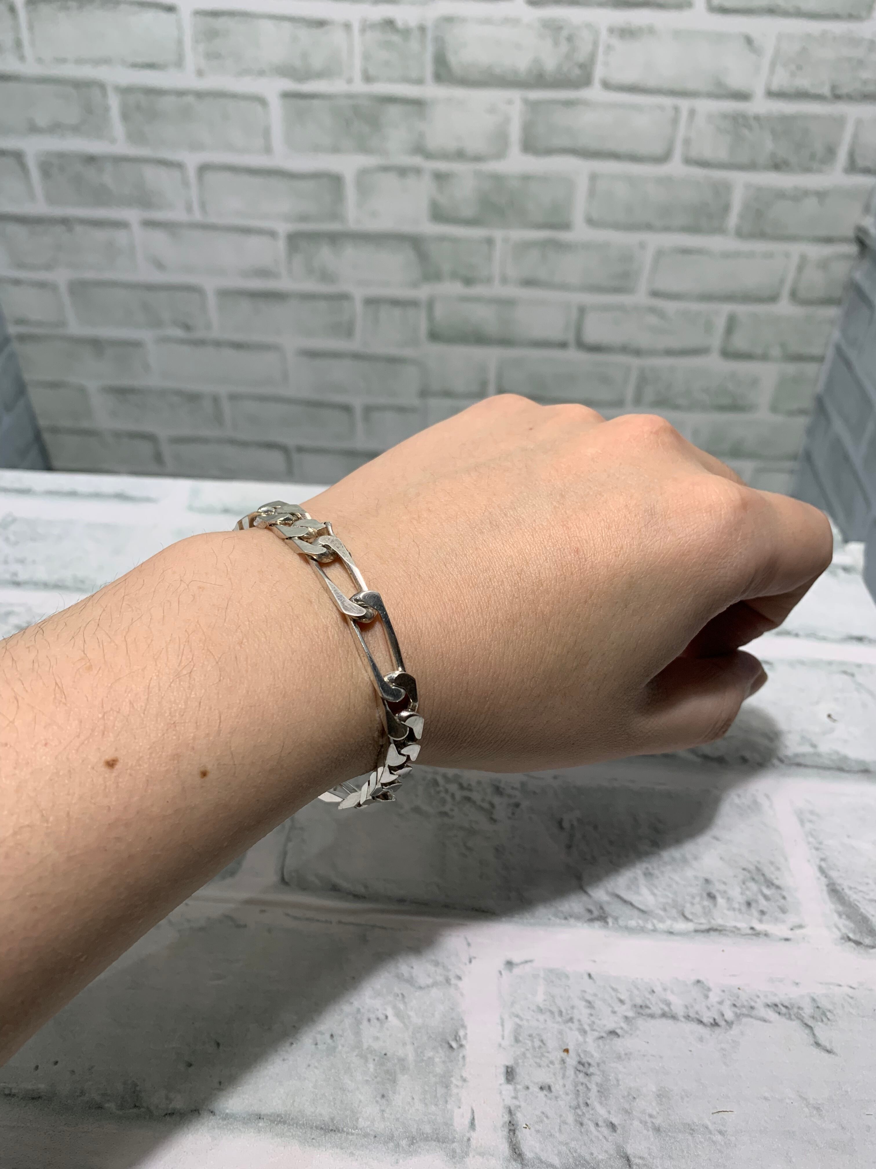 イタリアンシルバー特有の角張った喜平チェーンとフィガロチェーンを組み合わせたブレスレット。