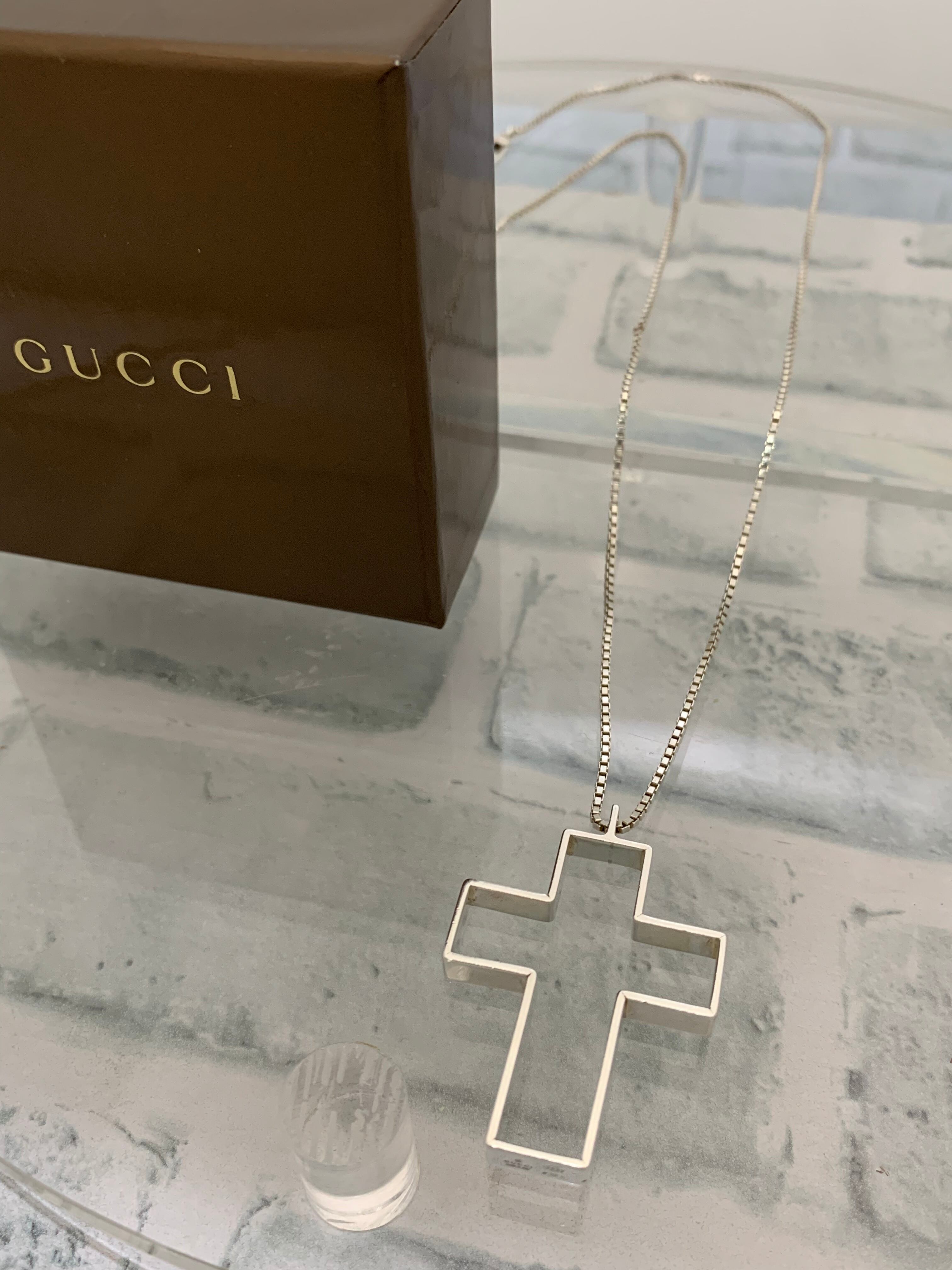 美品 オールドグッチ チャンキー オープンクロス ベネチアン ロングネックレス