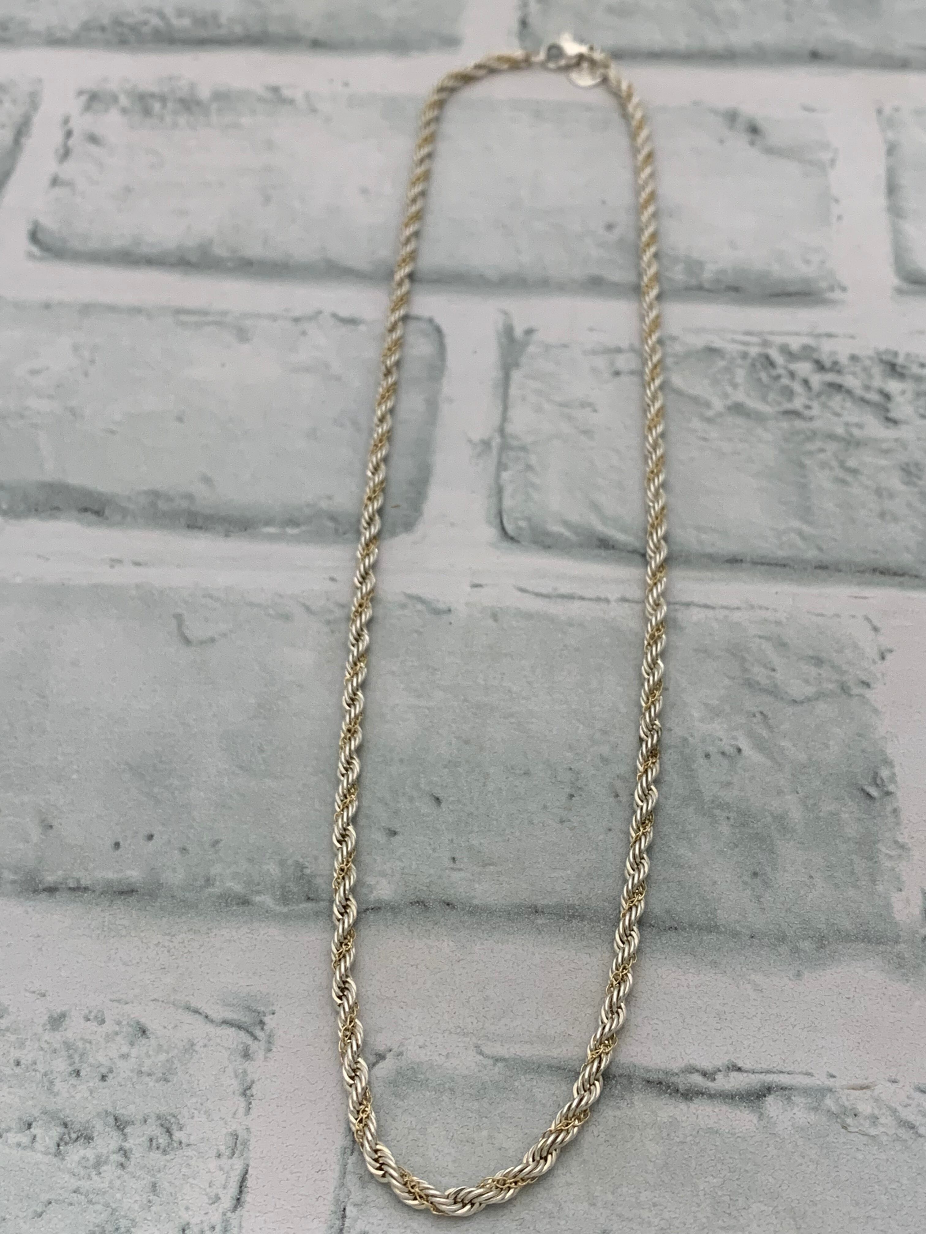 シルバーのロープチェーンに18金でデザインされた細身のチェーンが巻き付いたラグジュアリーなアイテム。ヴィンテージティファニーの中でも特に人気の一品になります。