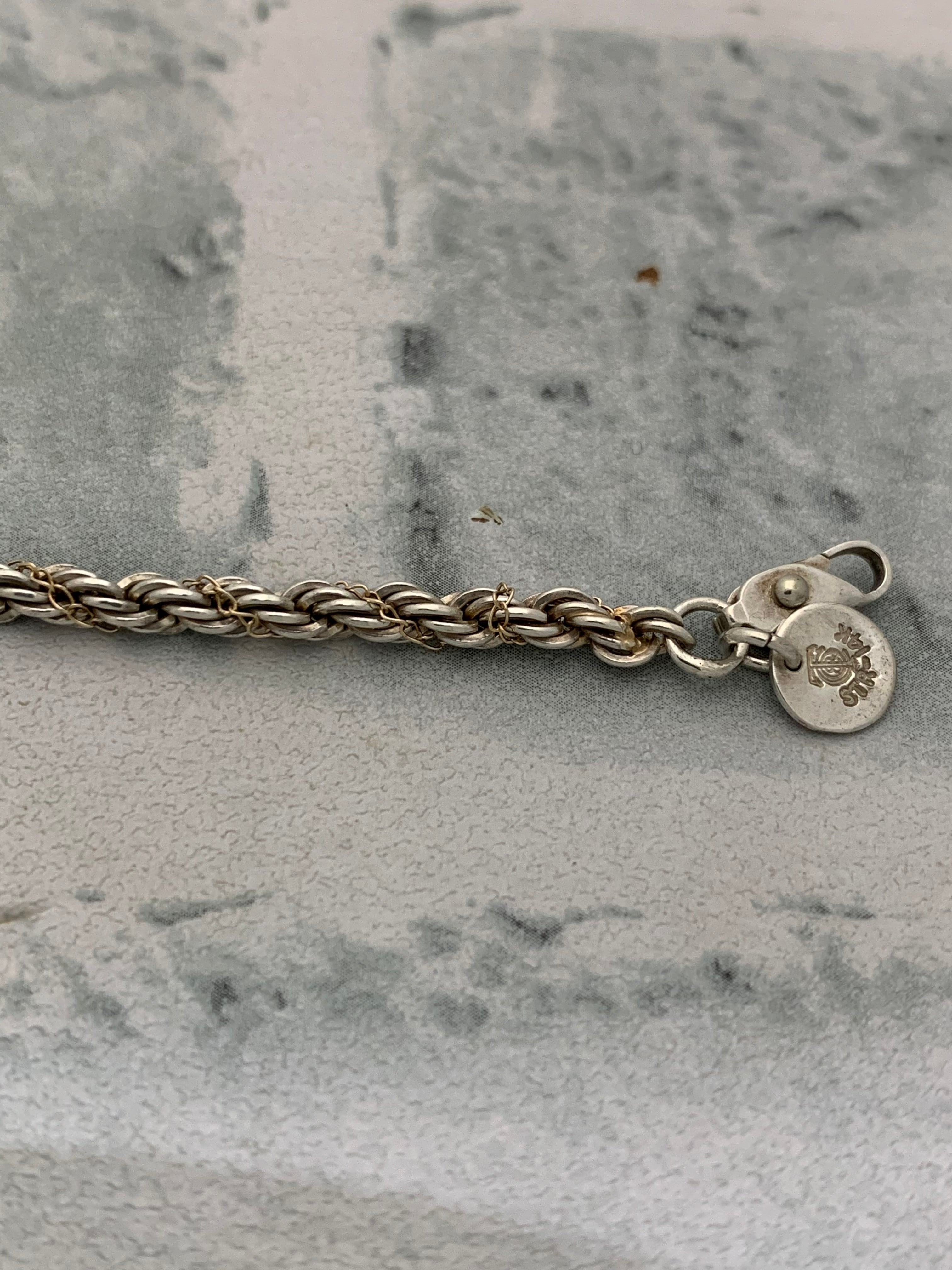 シルバーのロープチェーンに14金でデザインされた細身のチェーンが巻き付いたラグジュアリーなアイテム。ヴィンテージティファニーの中でも特に人気の一品になります。