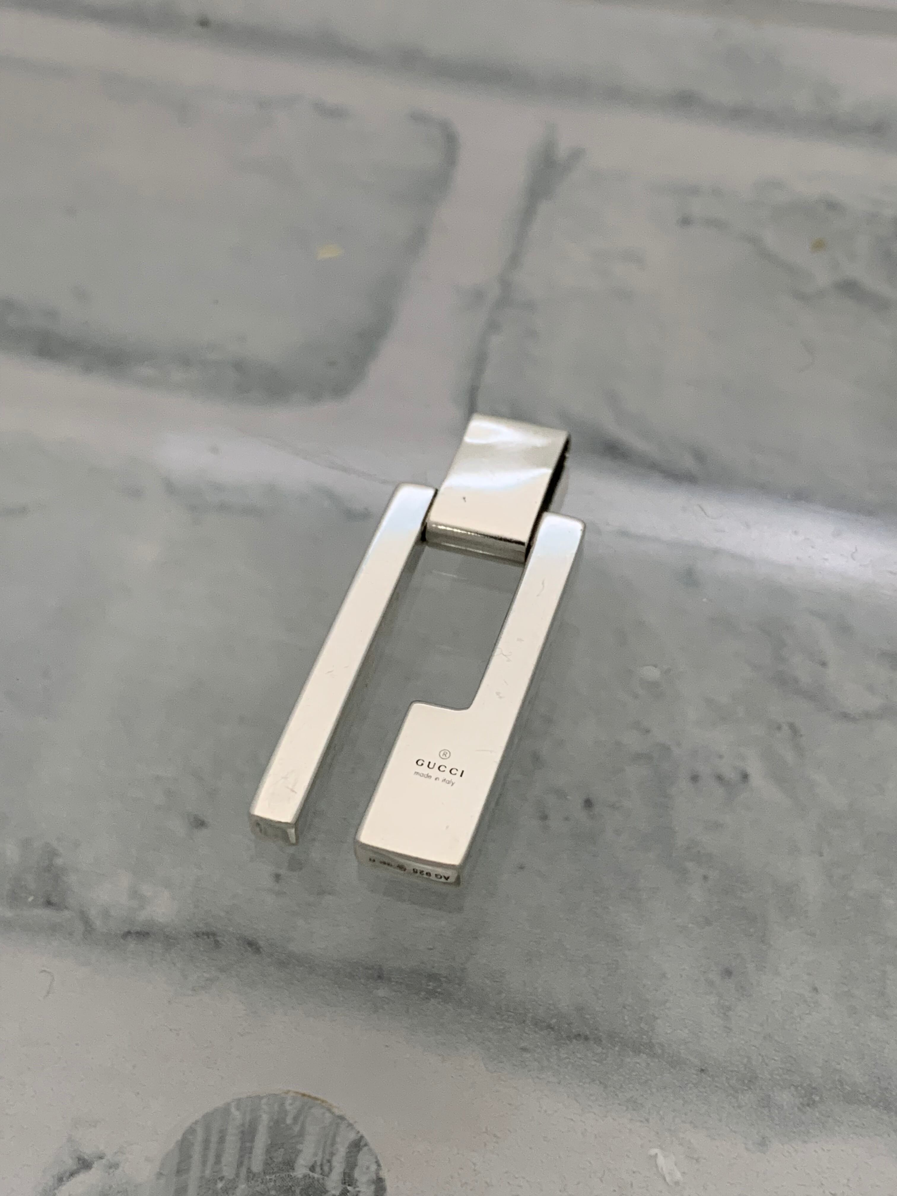 グッチのシグネチャーであるGがスリットデザインで施されたネックレストップ。オールドグッチらしい角張ったエッジのあるデザインになっています。