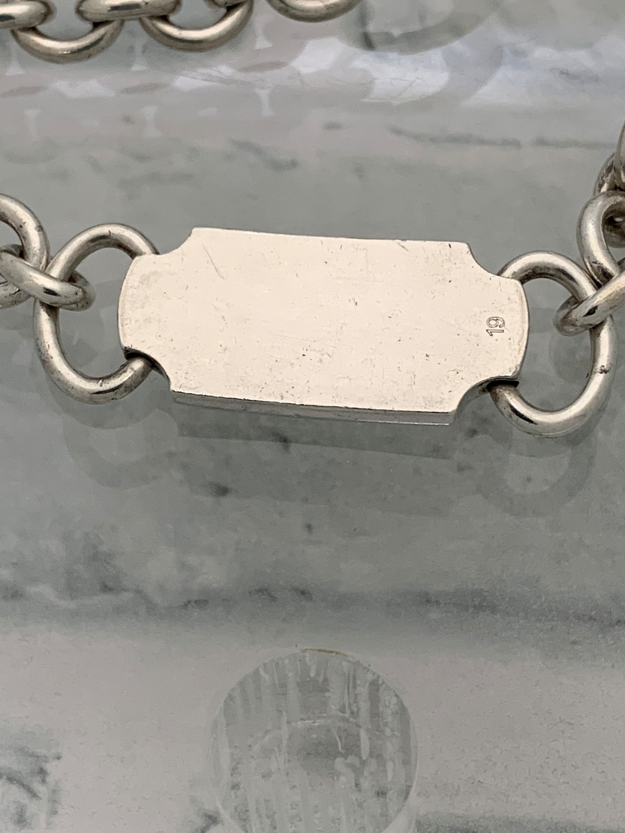 丸みを帯びたリンクチェーンを使用したIDブレスレット。イタリアンシルバーを元にしたデザインが多いティファニーやグッチが得意とするデザインです。