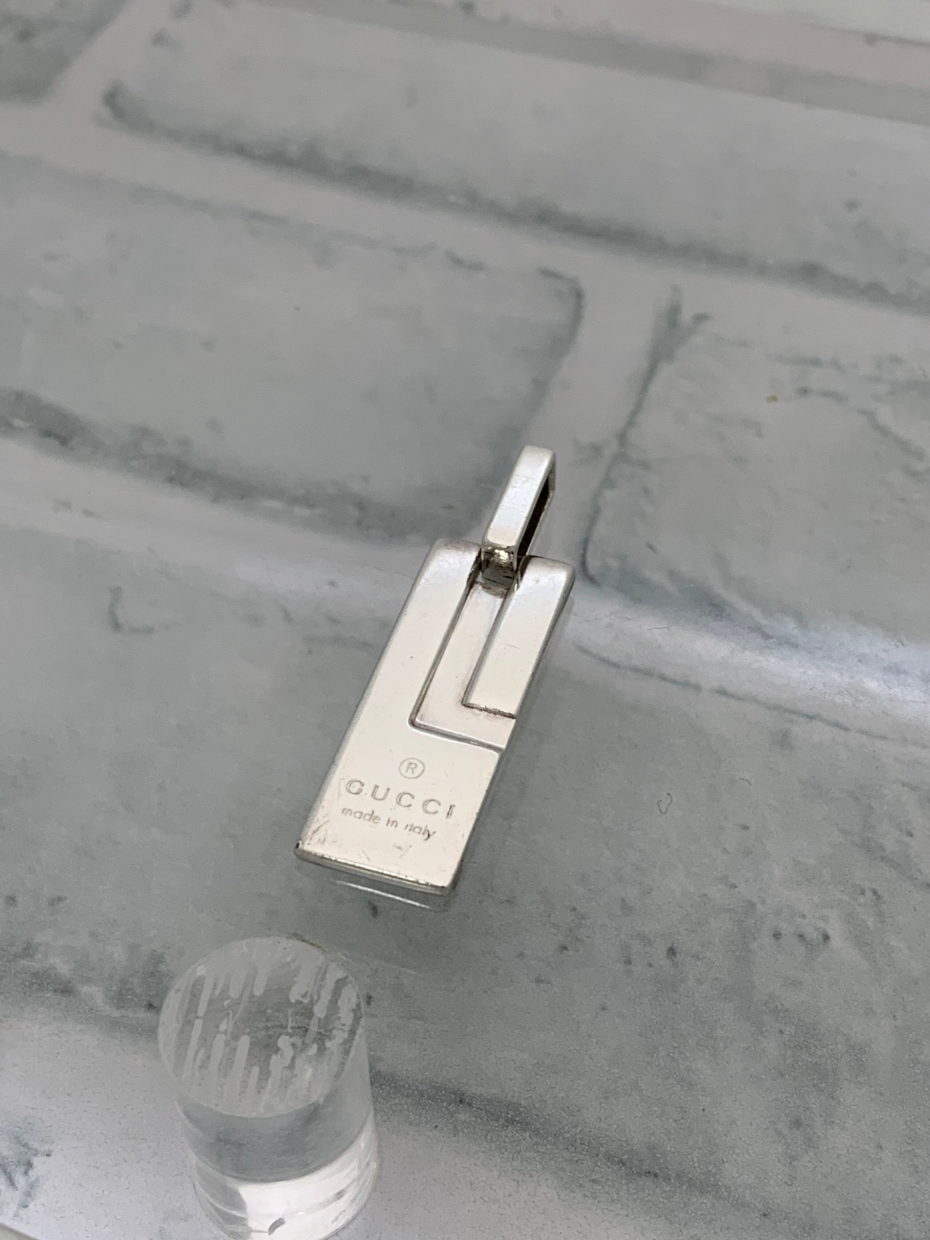 プレートデザインのネックレストップ。グッチらしい角張ったエッジのあるデザインにロゴ刻印をあえてデザインに取り入れてるのが特徴的。