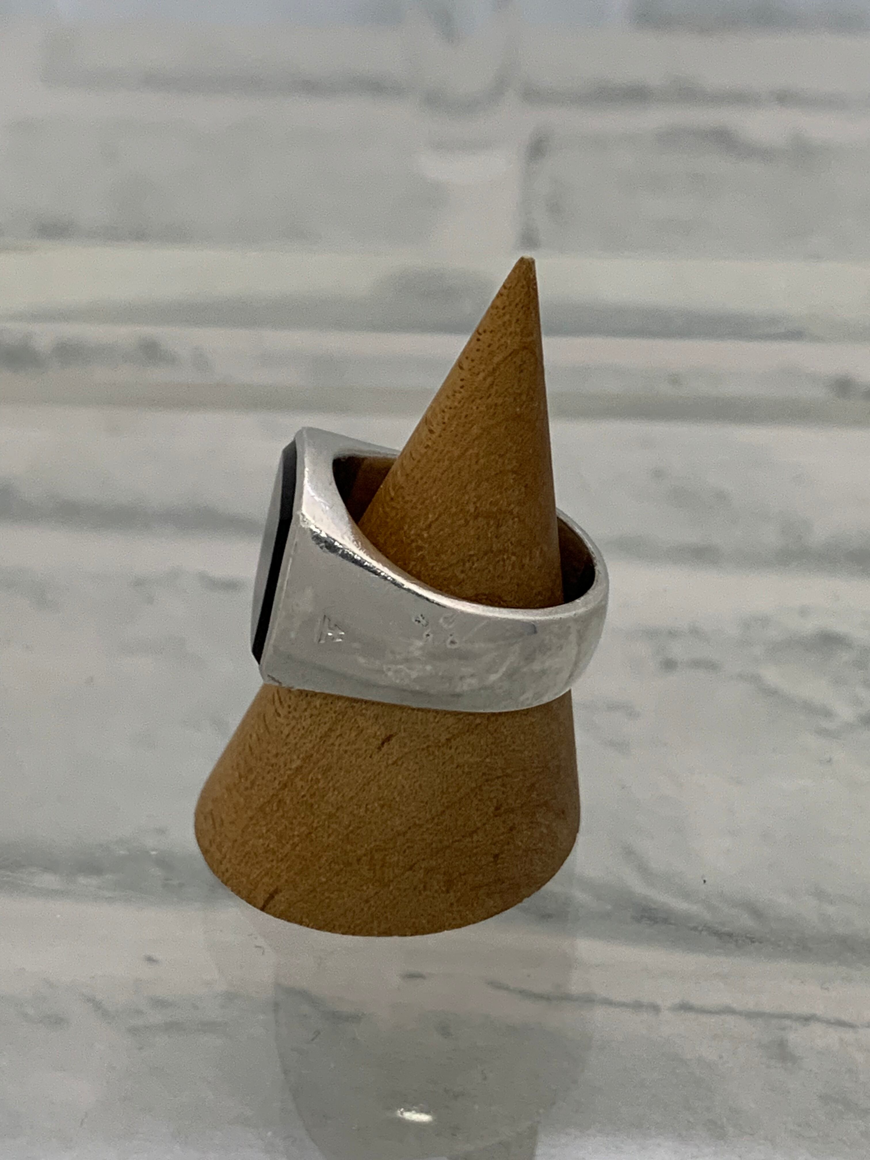 トムウッドのシグネチャーアイテムであるシグネットリング。こちらは中央にオニキスがデザインされたモデル。オニキスの表面はマット加工が施されており、光沢が抑えられ、より品のある印象です。