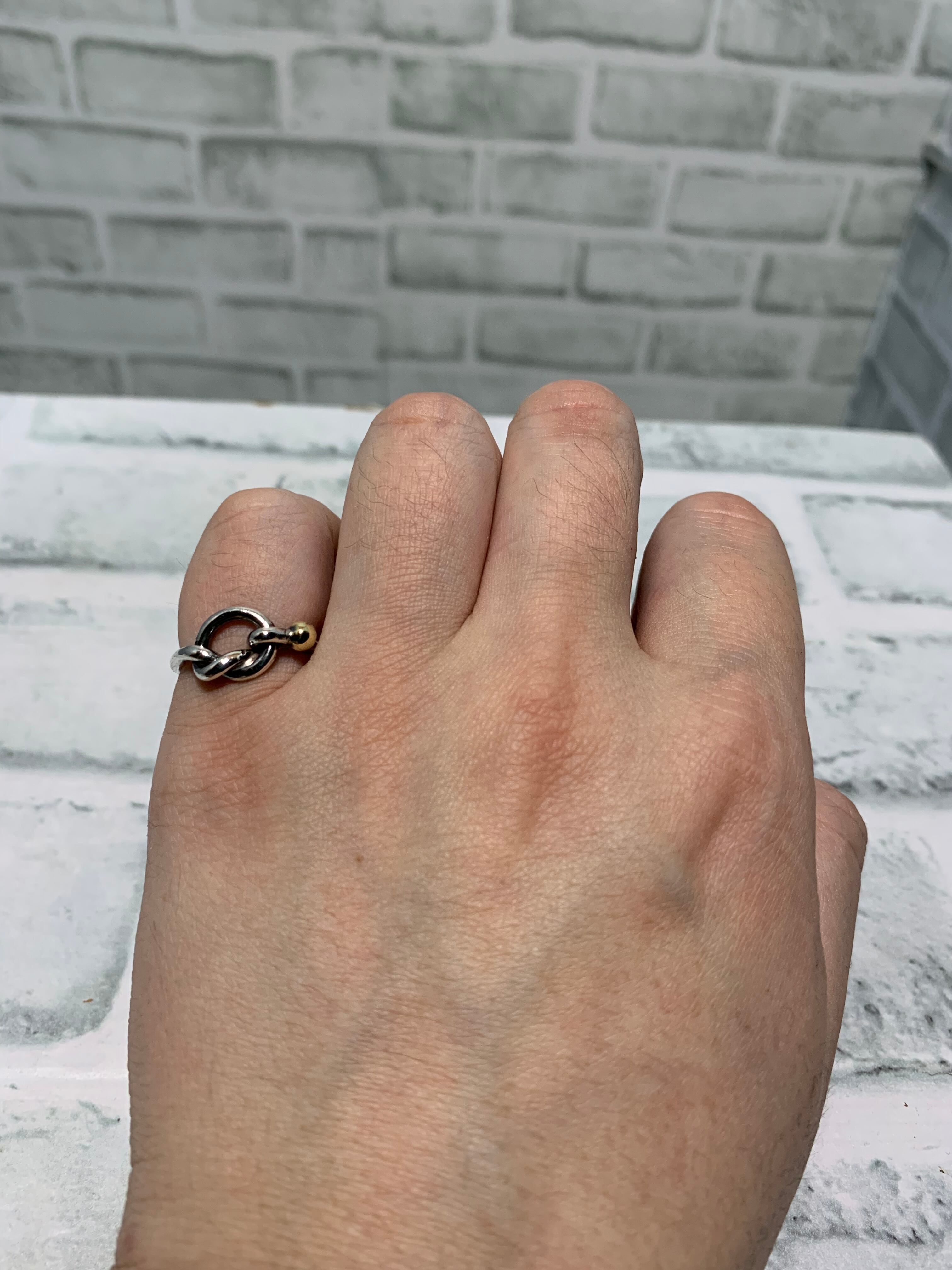 ハートをイメージしたノットモチーフがデザインされたリング。一部18金でデザインされているのがアクセントになっています。