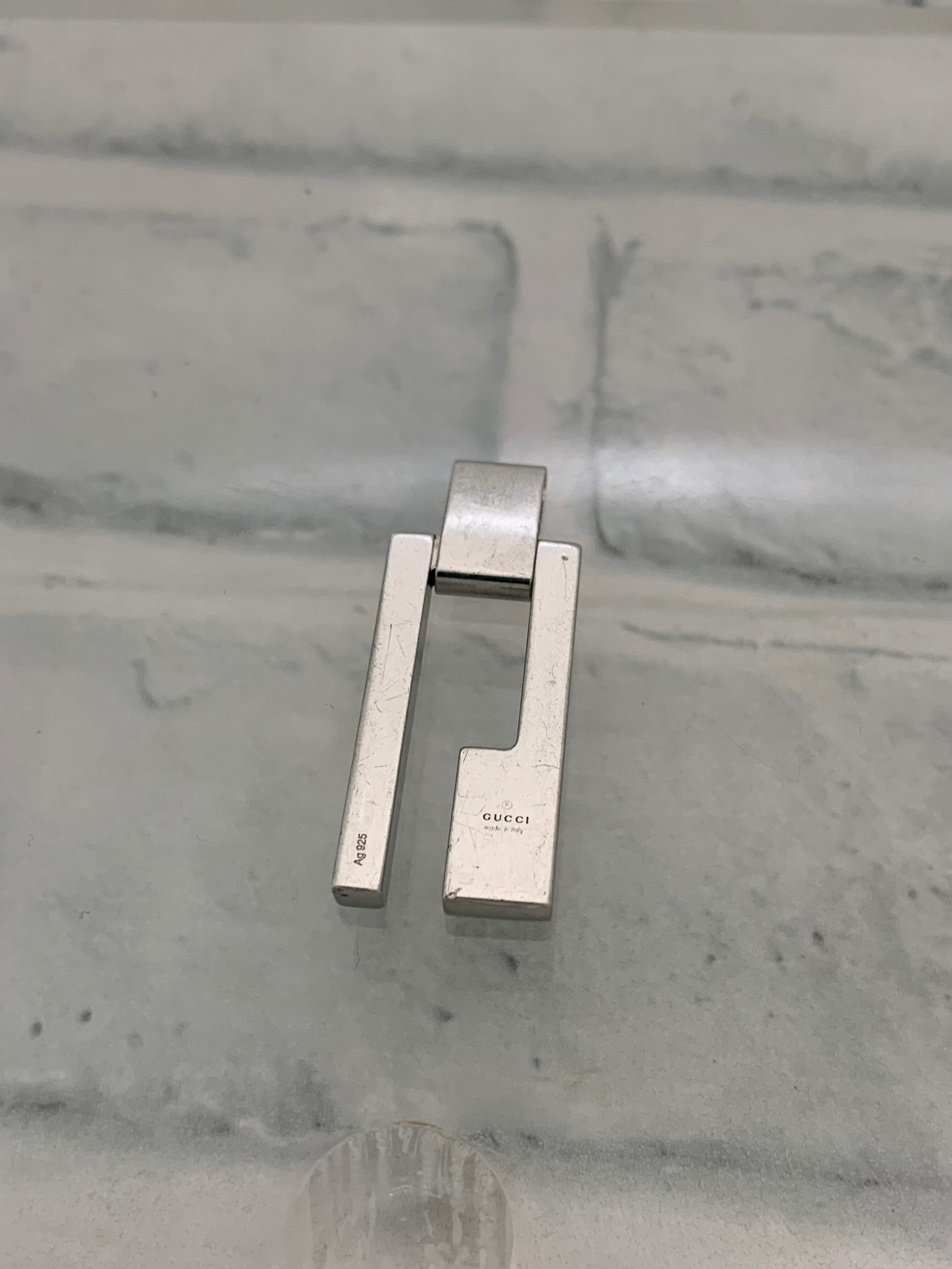 グッチのシグネチャーであるGがスリットデザインで施されたネックレストップ。オールドグッチらしい角張ったエッジのあるデザインになっています。
