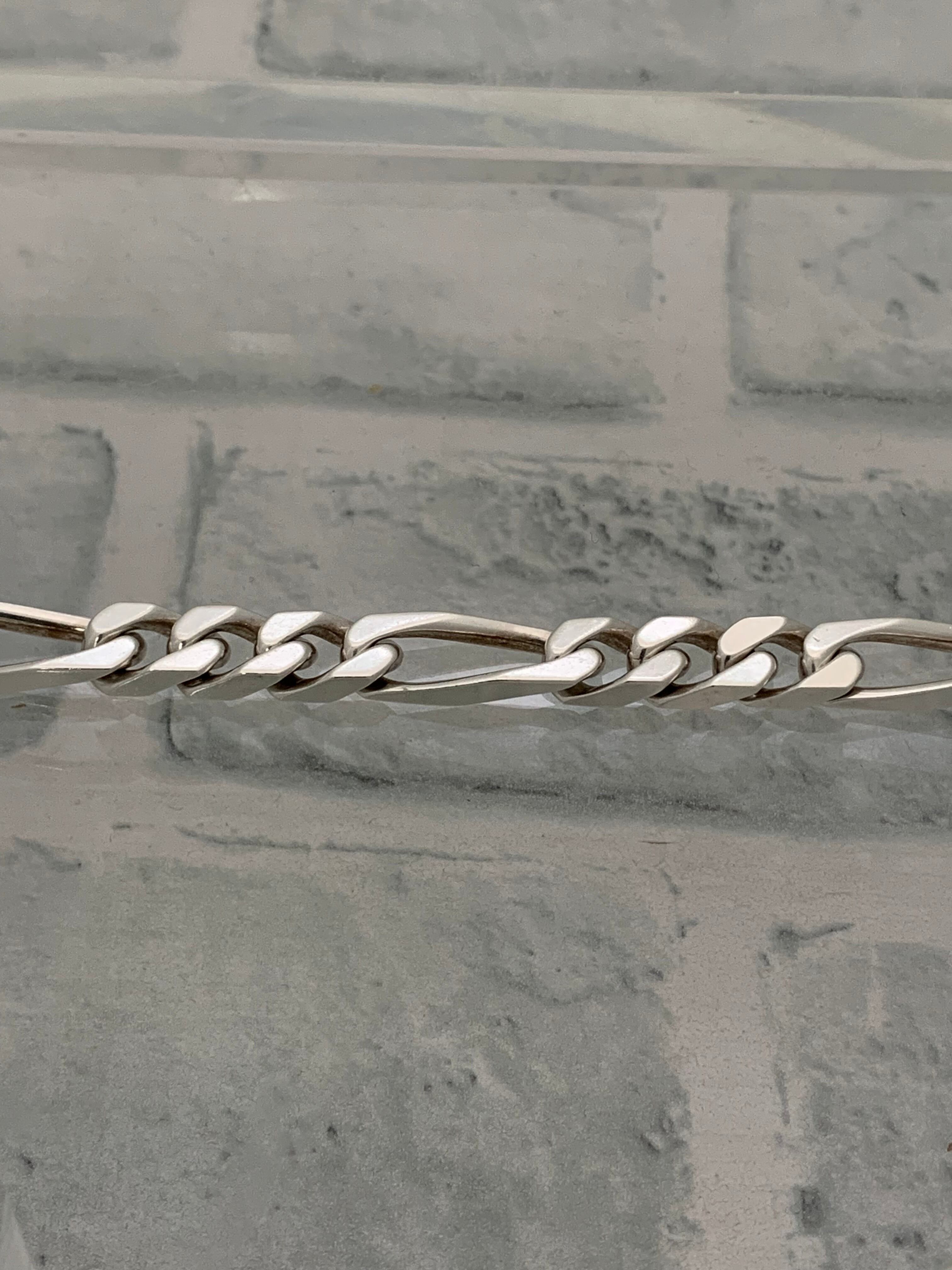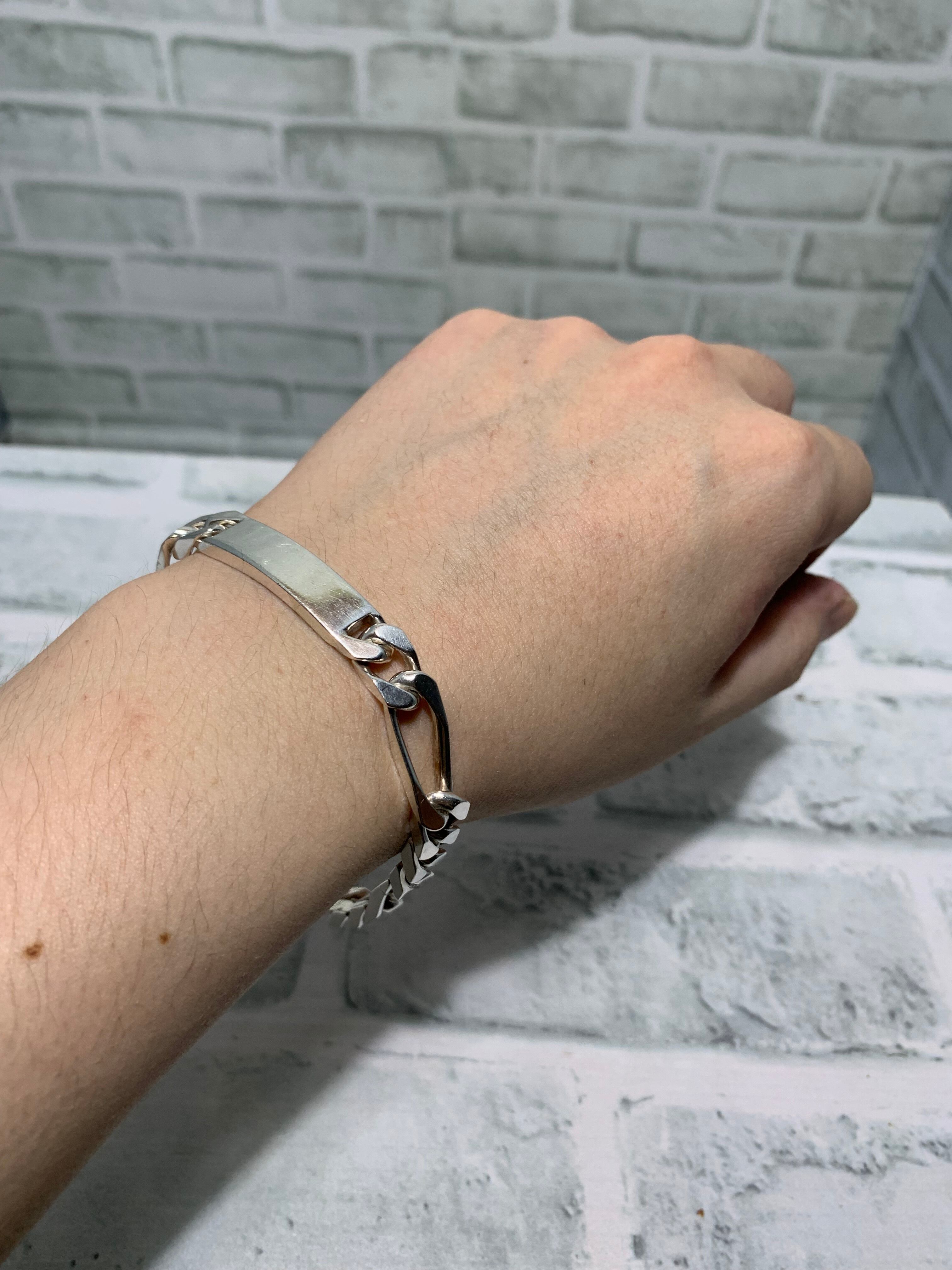 美品 ユーロシルバー ヘビー フィガロチェーン IDブレスレット ノニマス