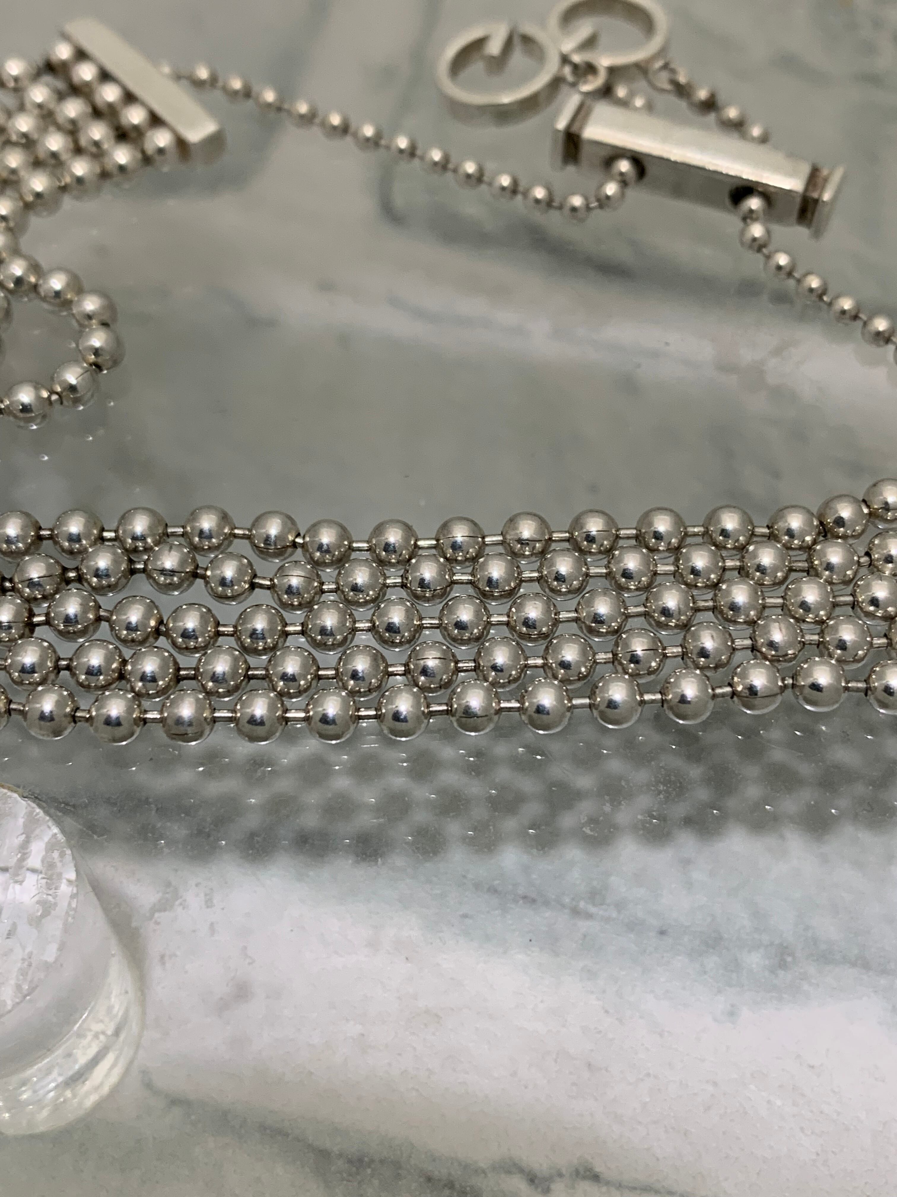 グッチが昔、多様していたボールチェーンを5連に纏めたブレスレット。5連にした事でグッチの上品さを保ちつつ、しっかり存在感を演出してくれます。