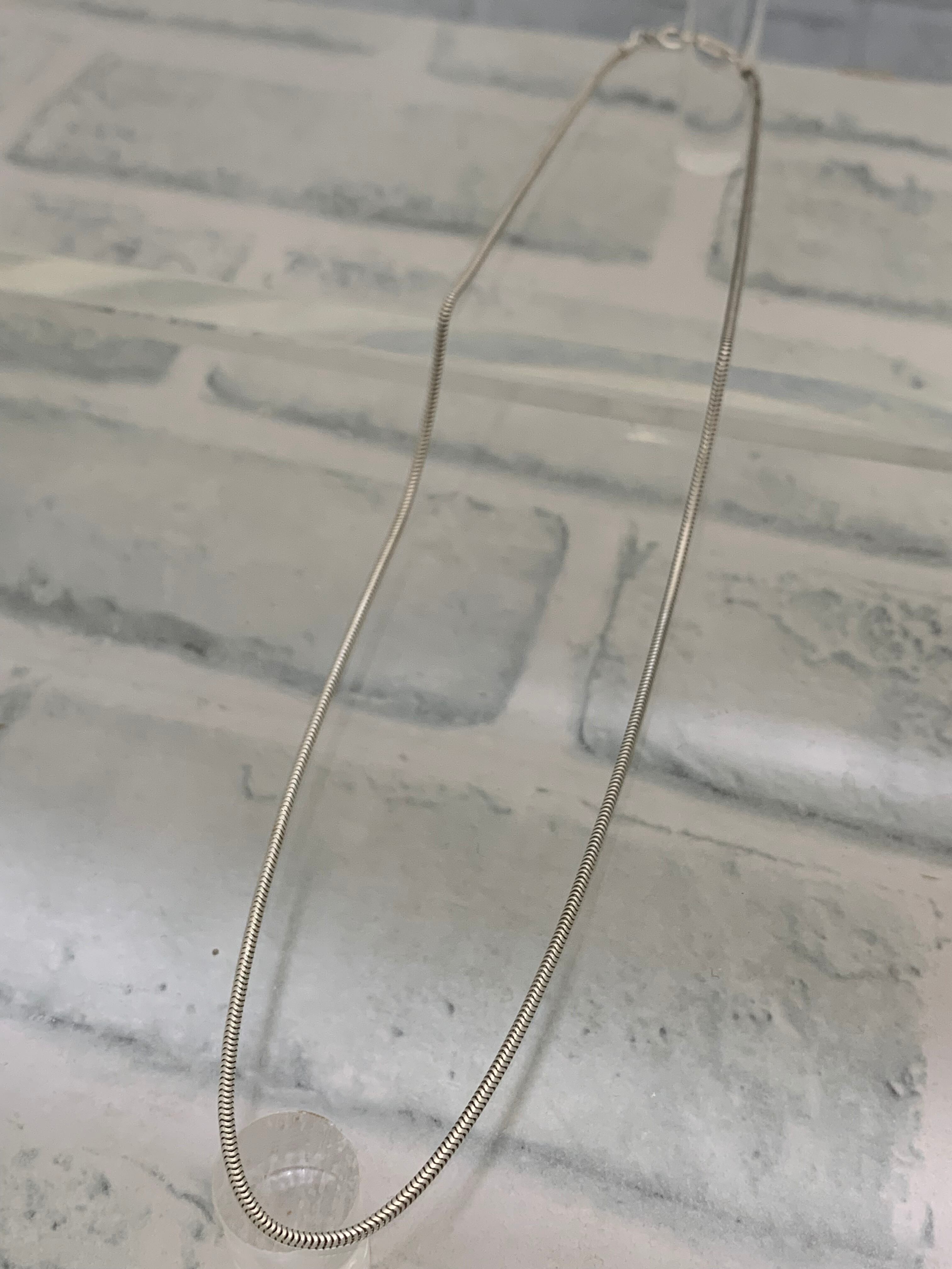 蛇腹をモチーフにしたデザインのチェーン。均一にデザインされた丸味のある上品な印象が人気のアイテム。イタリアンシルバー等のヴィンテージジュエリーにて昔から多様されているデザインです。