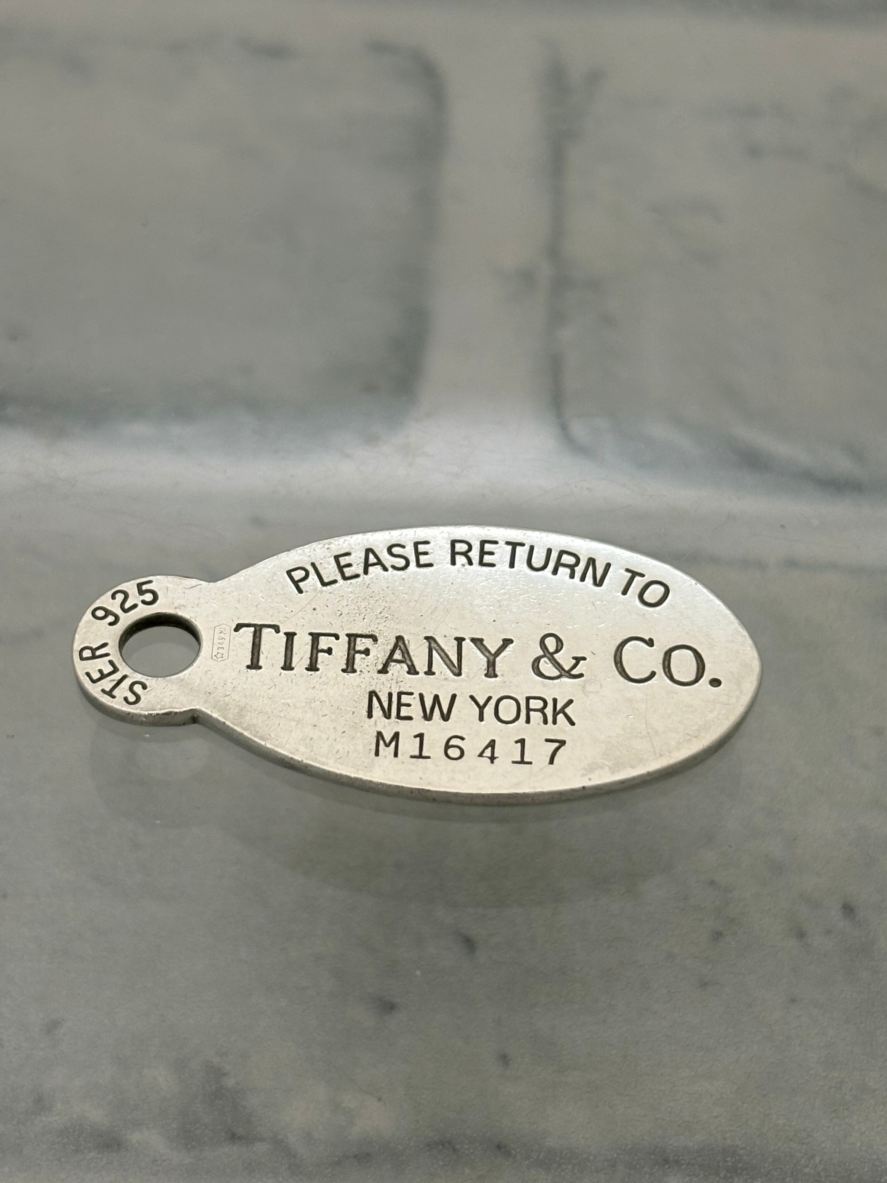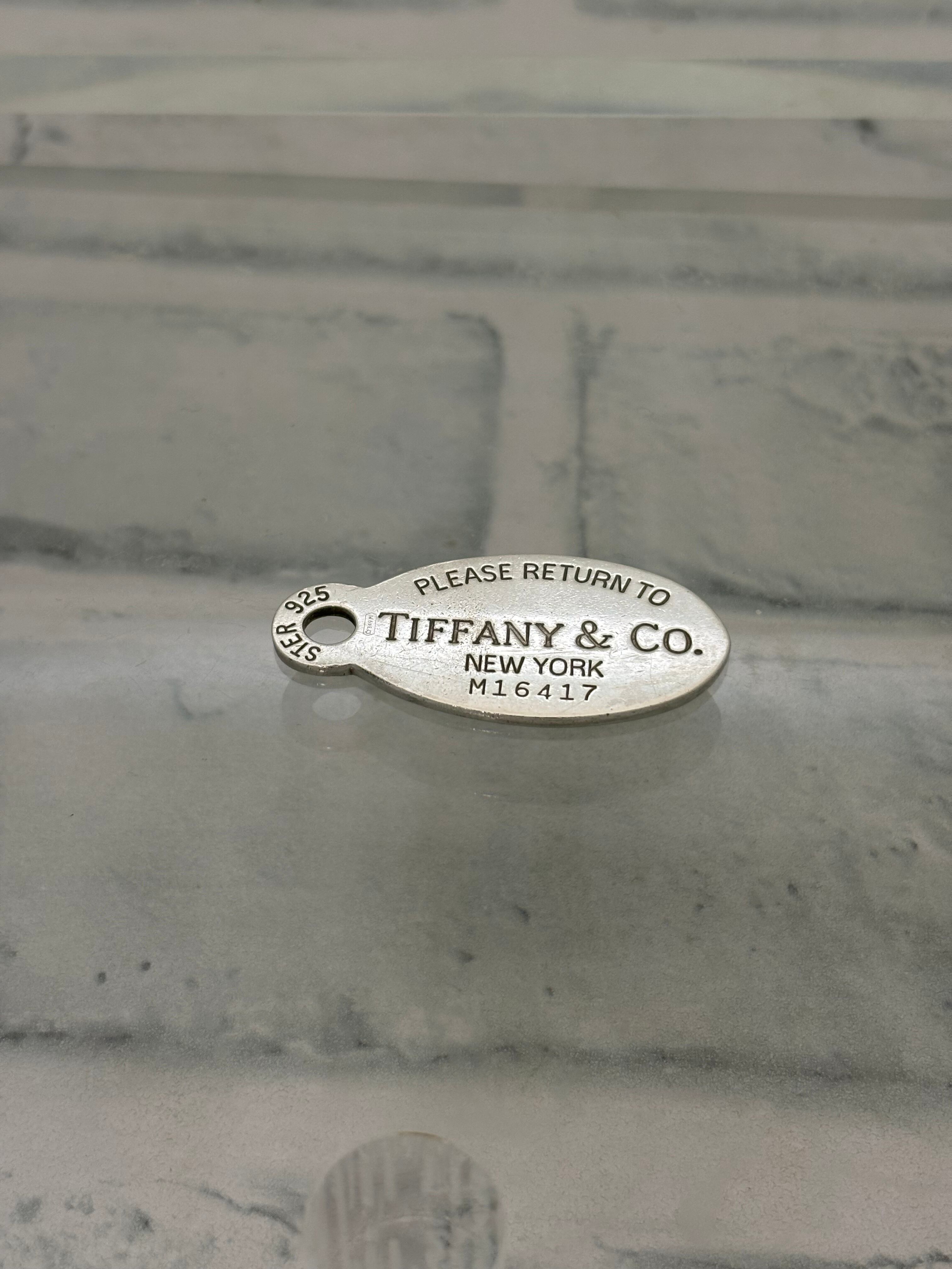 ティファニーにて定番人気のリターントゥシリーズのネックレストップ。大振りなオーバルデザインに、ロゴ等のリターントゥシリーズ共通のデザインが施されています。