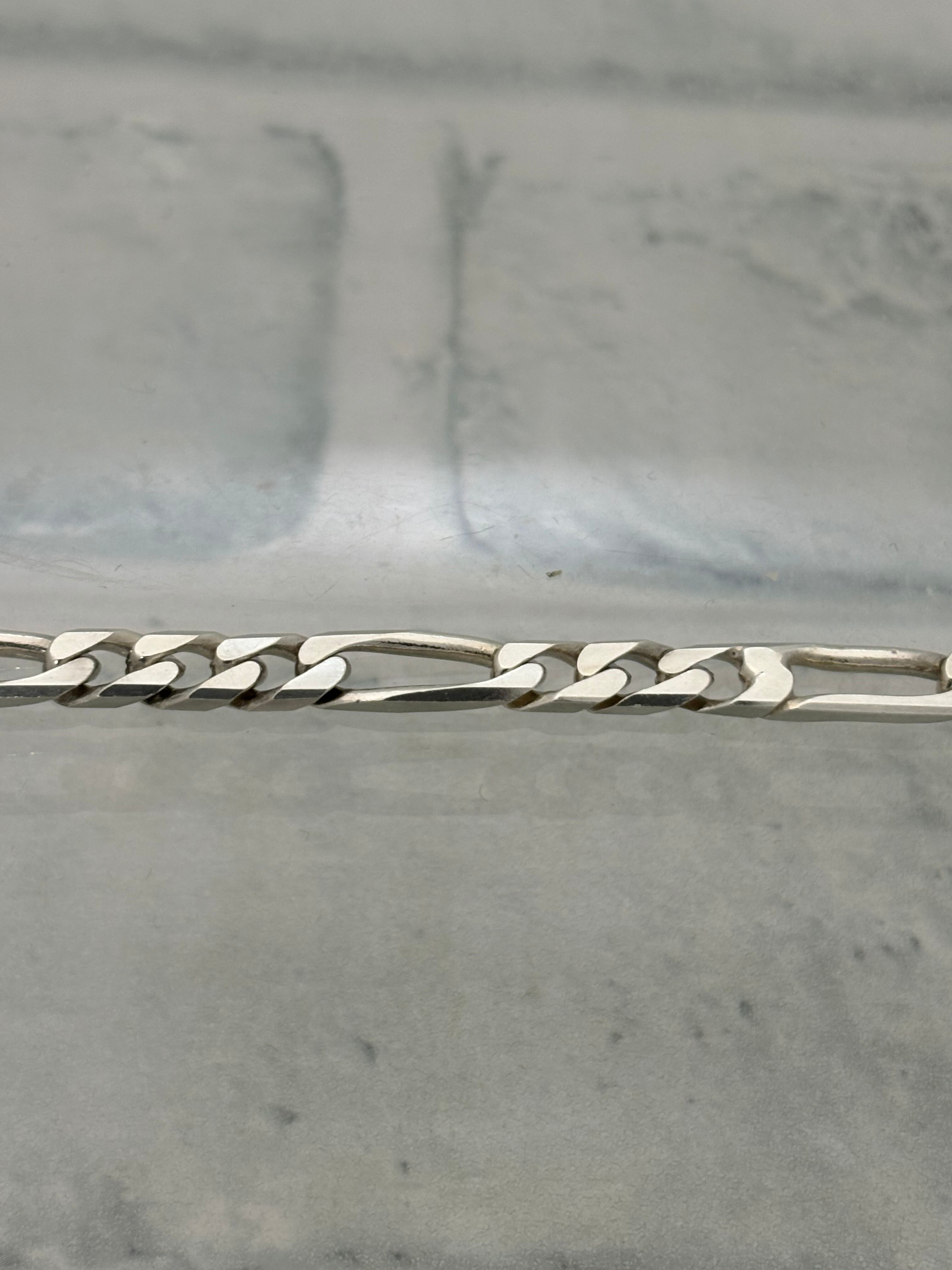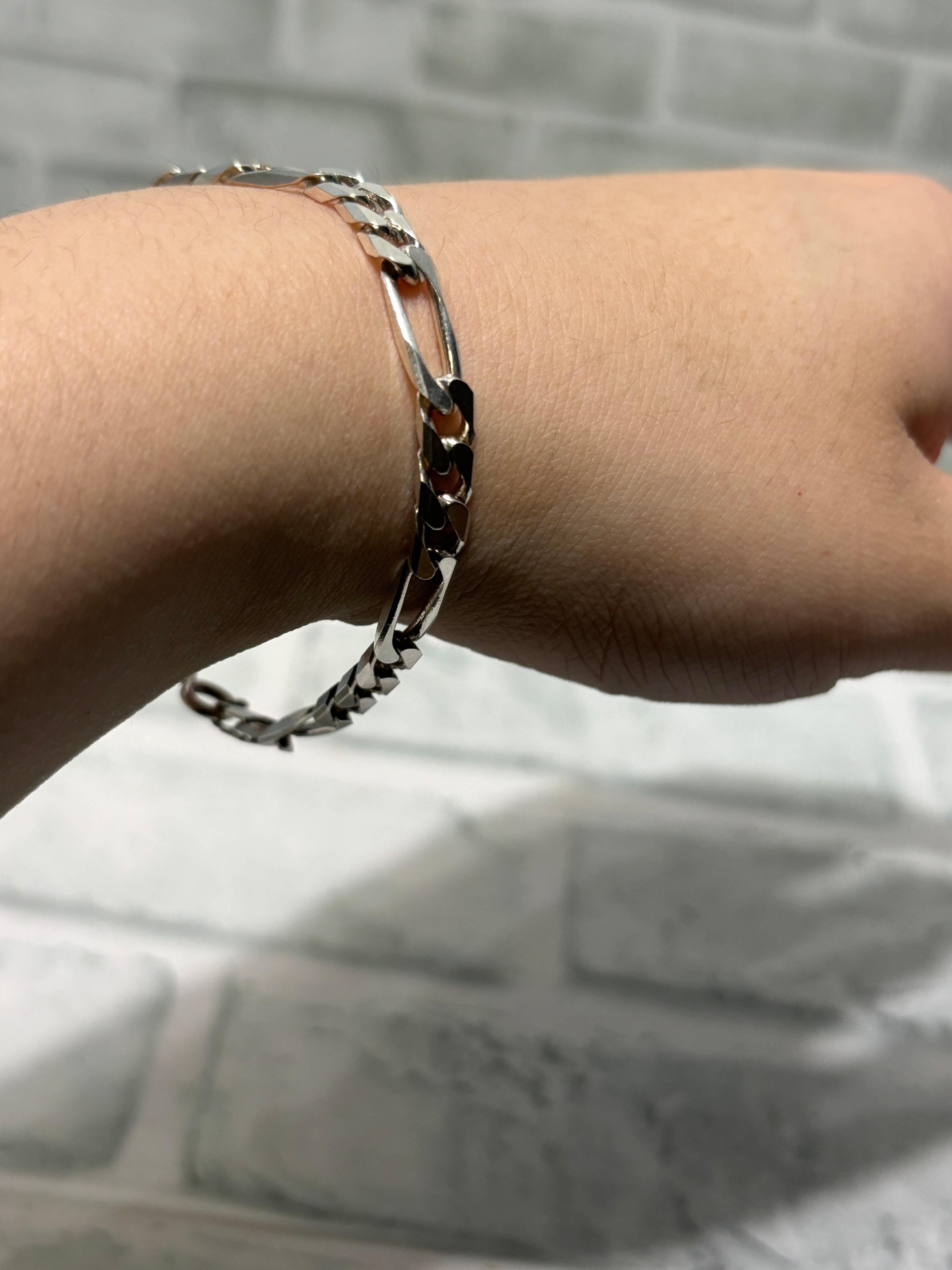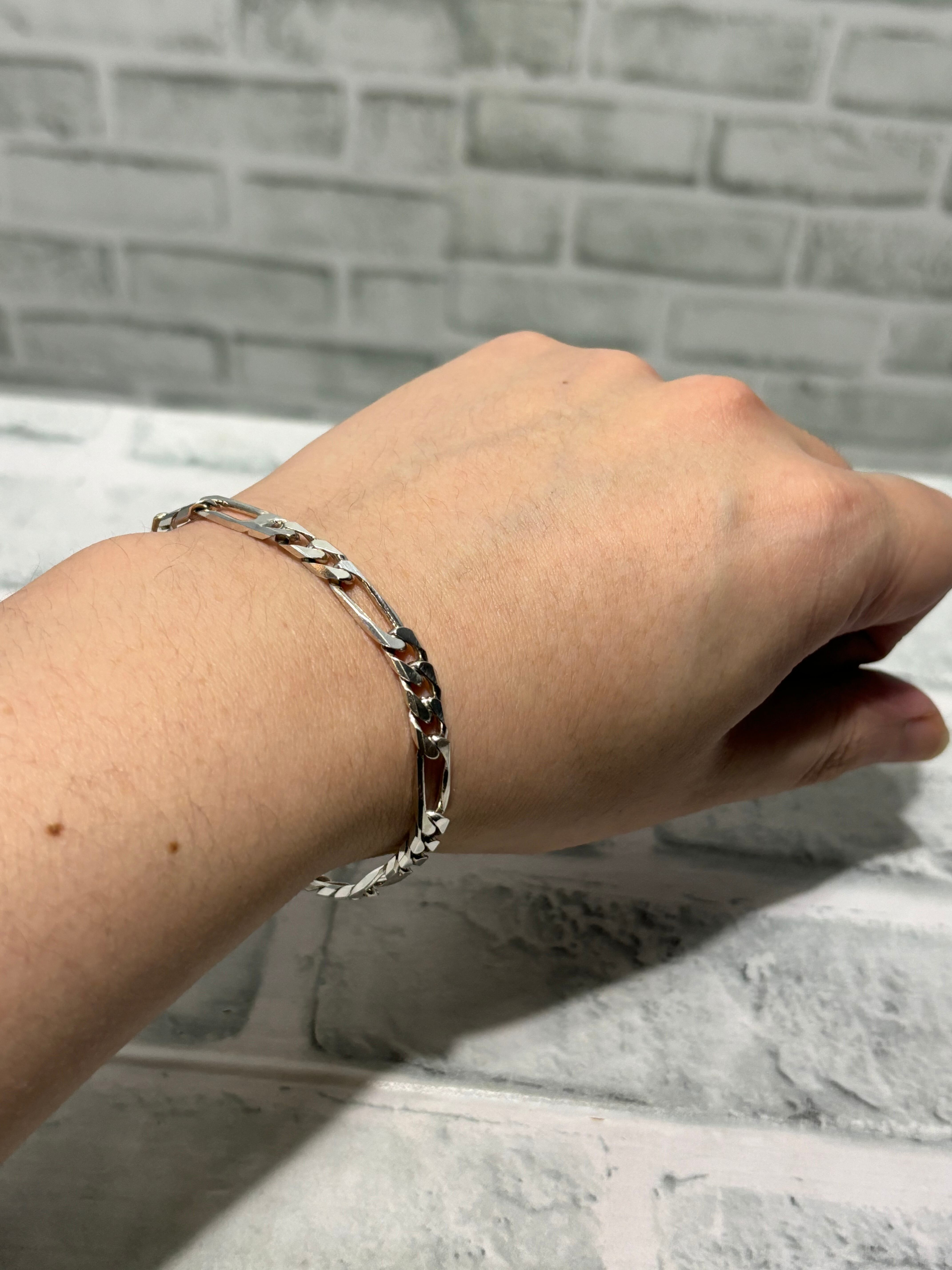 イタリアンシルバーで有名なフィガロチェーンを使用したブレスレット。縦長のフラットデザインが特徴的です。