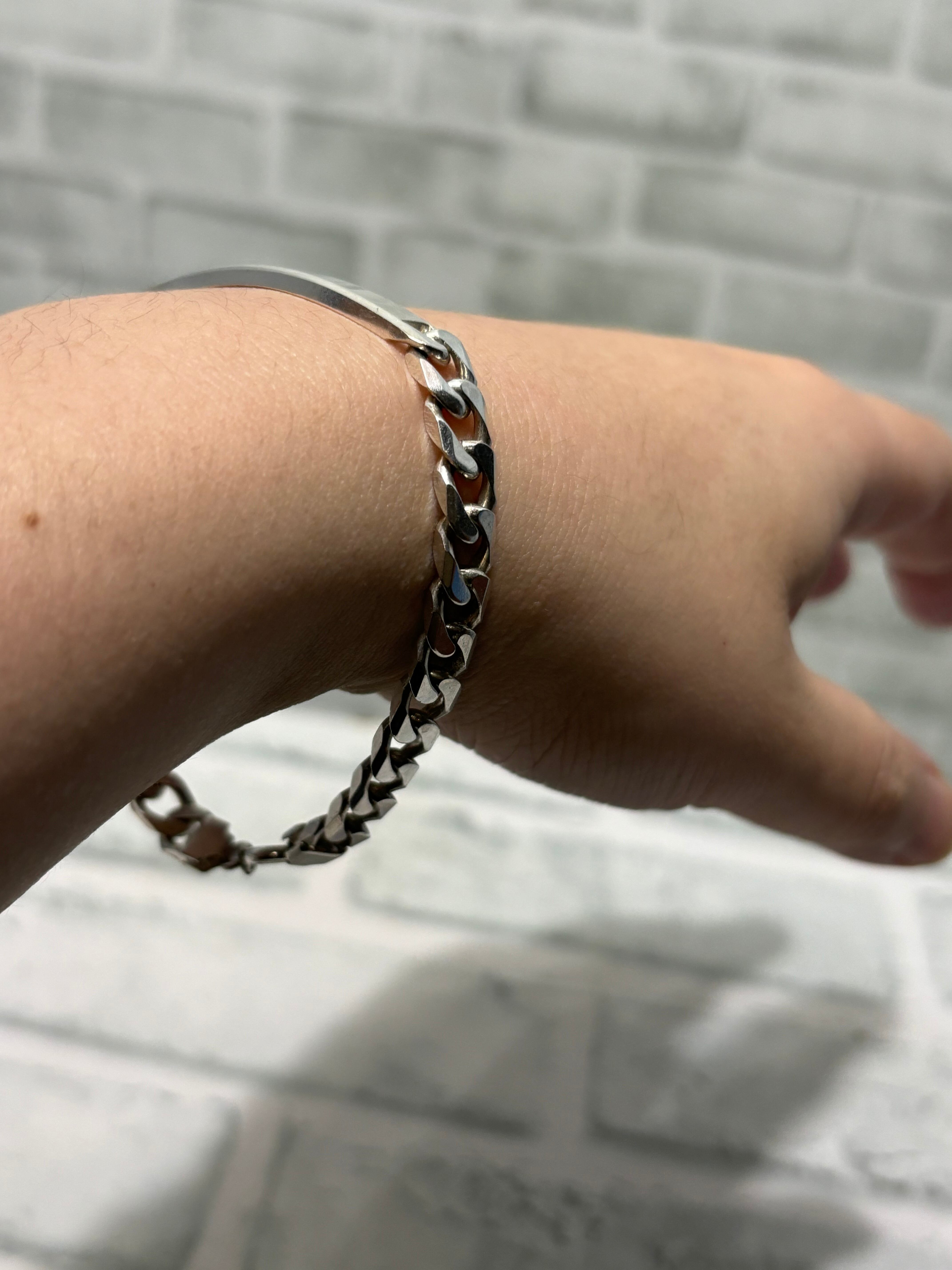 ネーム刻印や装飾の無いアノニマスデザインのIDブレスレット。マルジェラやティファニーの人気から年々入手が難しくなっているアイテムです。