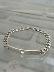 ネーム刻印や装飾の無いアノニマスデザインのIDブレスレット。マルジェラやティファニーの人気から年々入手が難しくなっているアイテムです。