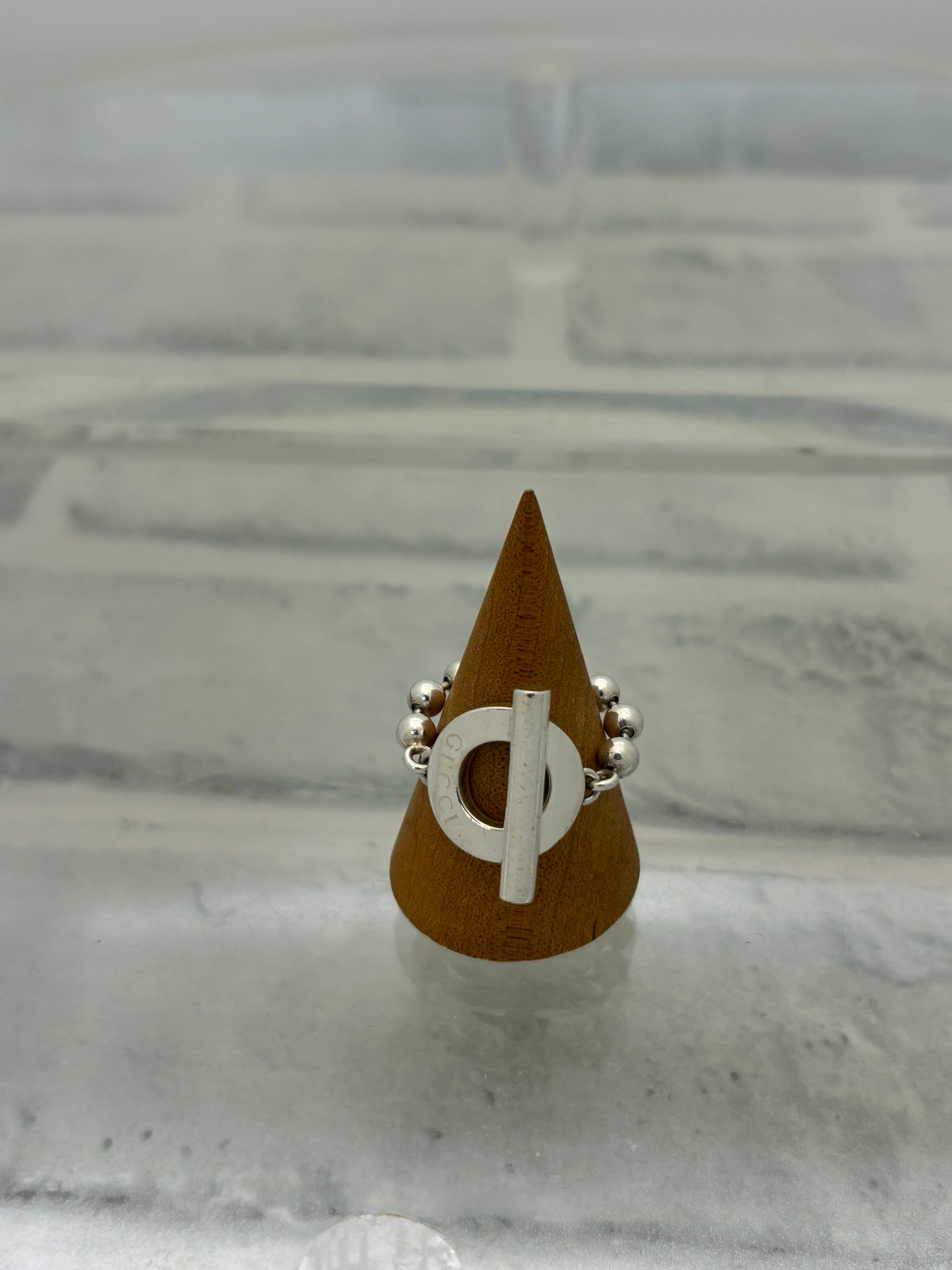 グッチにて定番人気のトグルデザインのボールチェーンブレスレットをそのままリングに落とし込んだユニークなアイテム。