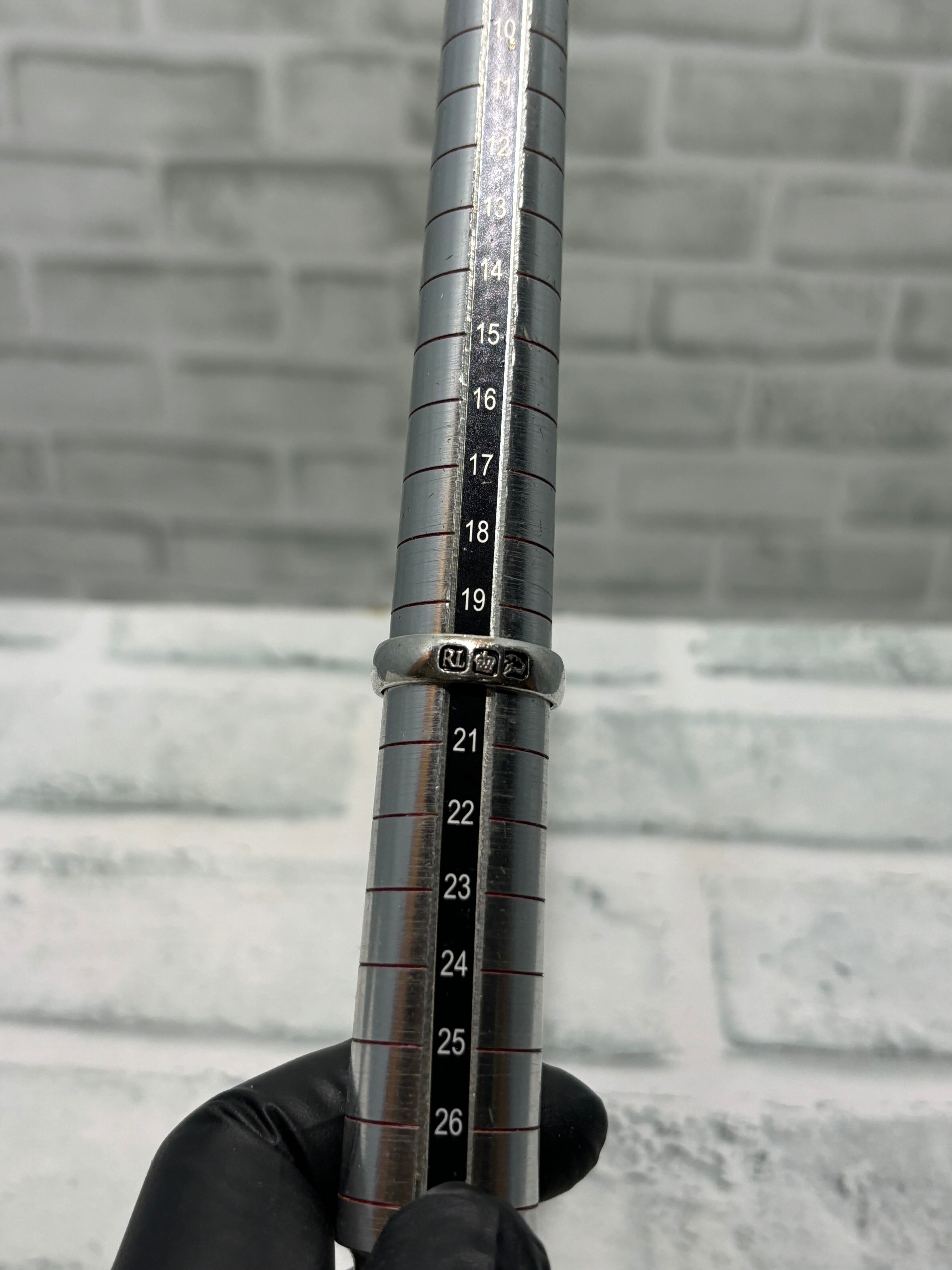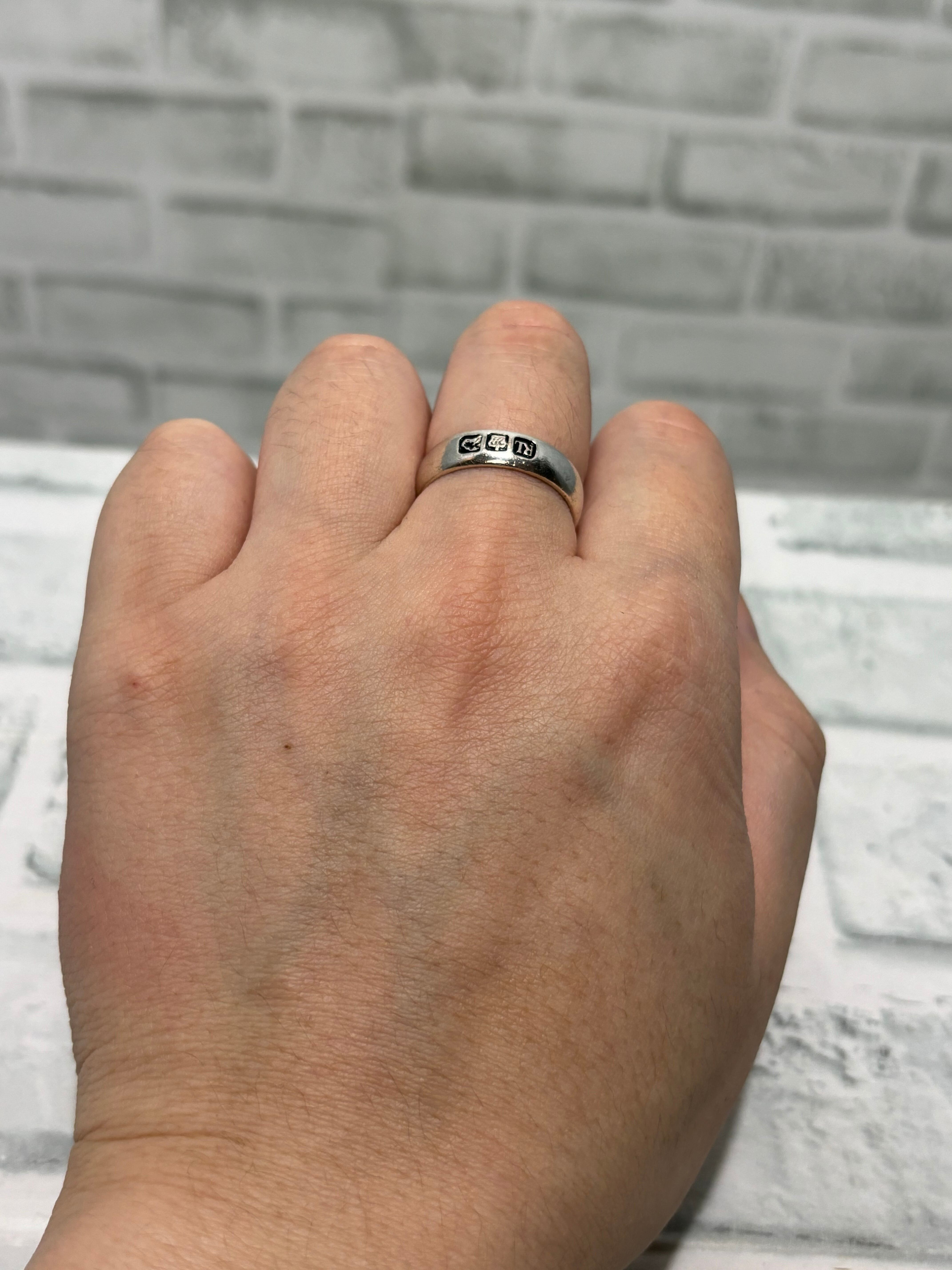 丸味のあるバンドリングにロゴ等の刻印が施されたモダンなリング。昔のラルフローレンが多様していたオリジナルのホールマークがデザインに取り入れられています。