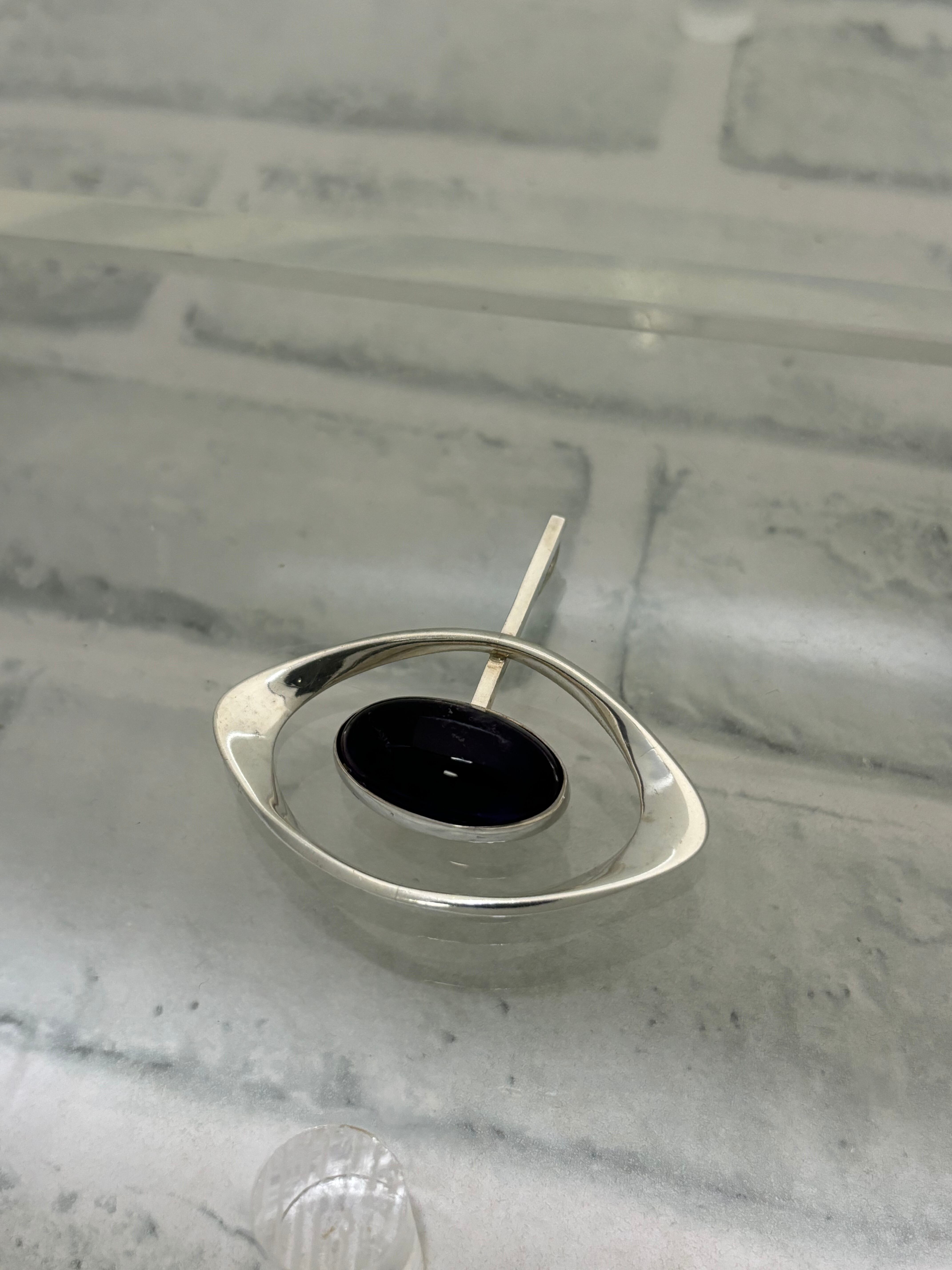 曲線が美しい北欧らしいモダンデザイン。中央には大きなアメジストを採用し、存在感を引き立てています。(アメジストの色味は7枚目、8枚目の画像でご確認下さい。)