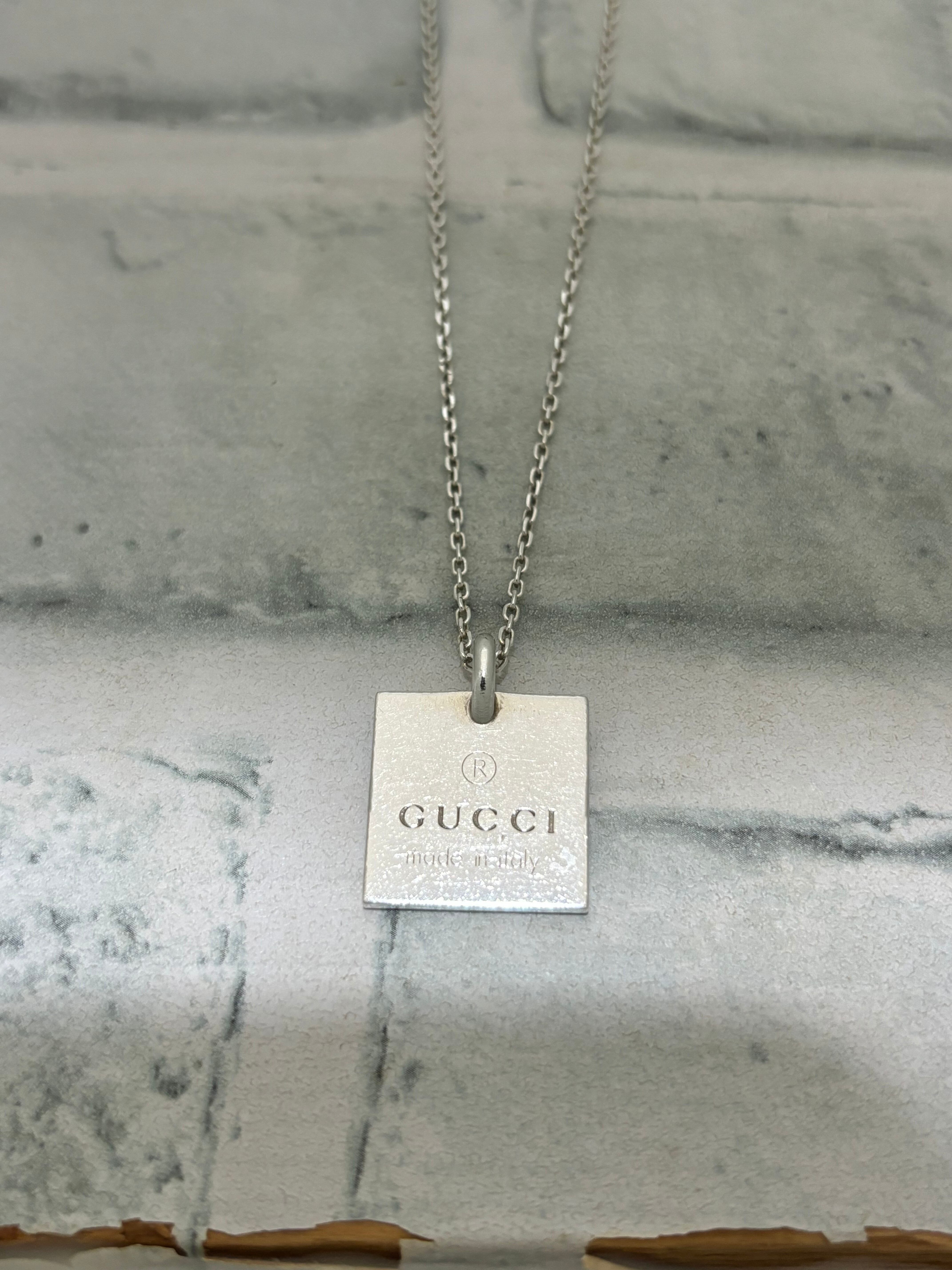 美品 グッチ GUCCI ロゴ スクエア プレート ネックレス