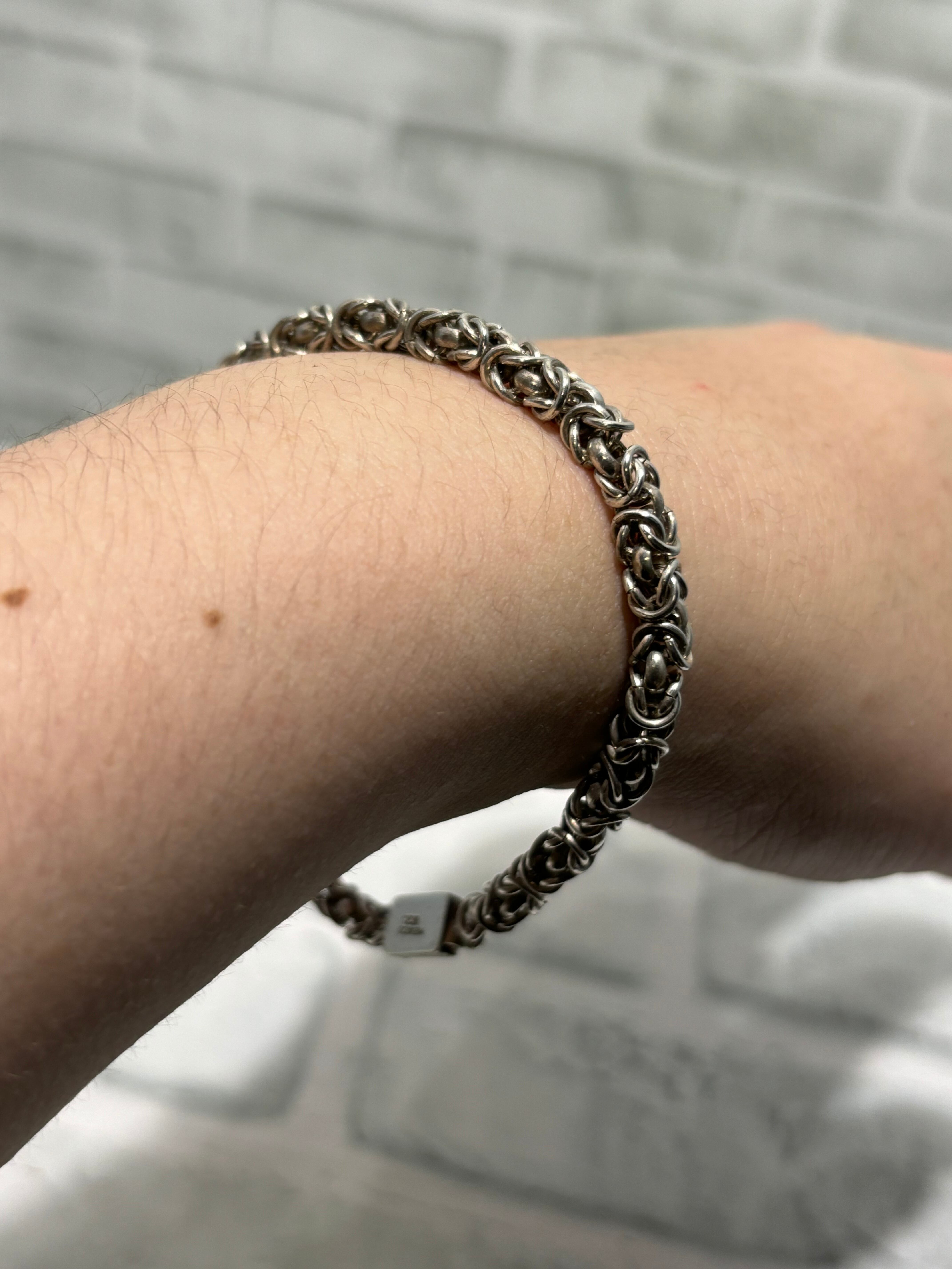 中世の時代の騎士が着るチェーンメイルの編み方を取り入れたビザンチンチェーンのブレスレット。