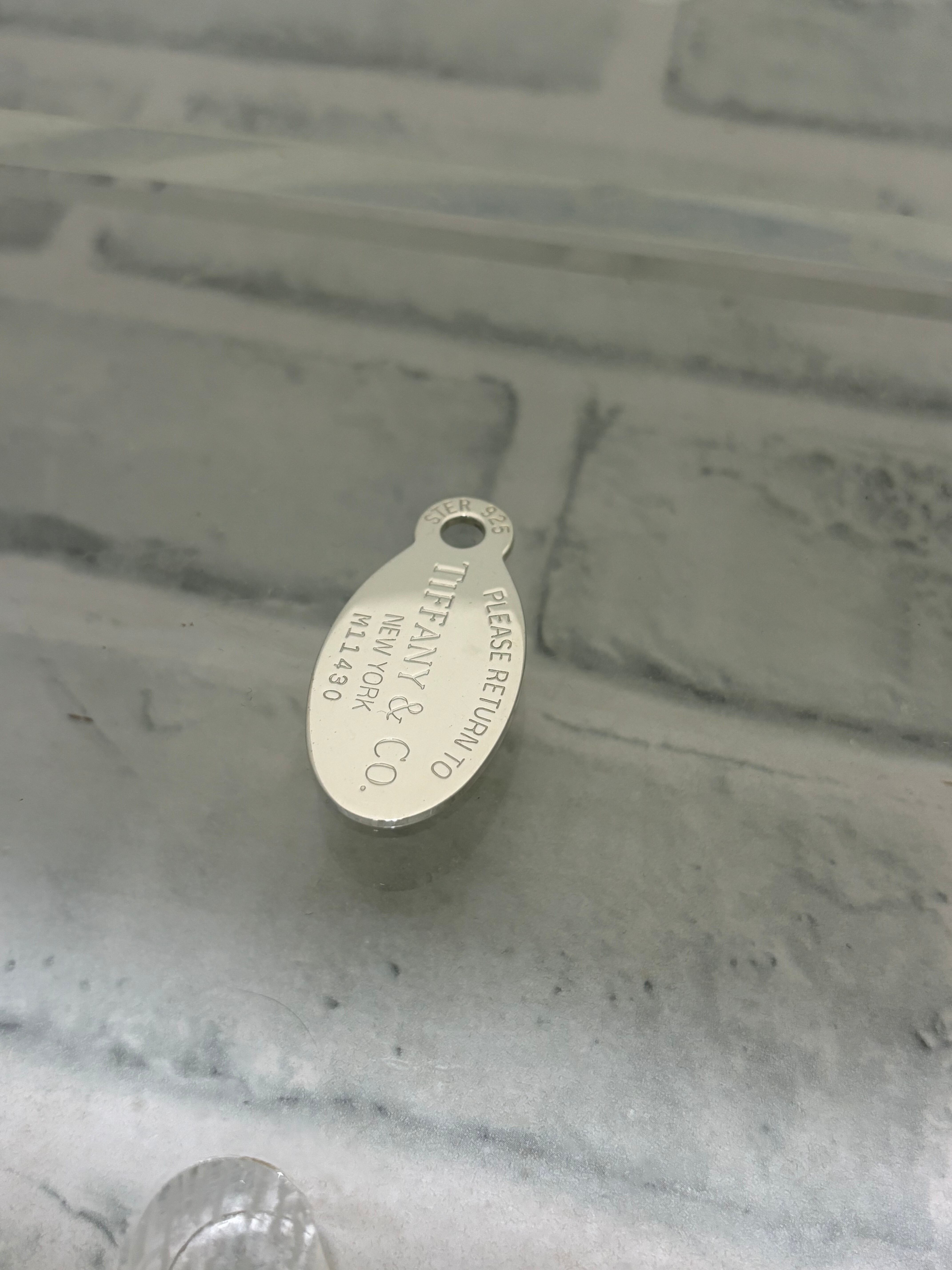 ティファニーにて定番人気のリターントゥシリーズのネックレストップ。大振りなオーバルデザインに、ロゴ等のリターントゥシリーズ共通のデザインが施されています。