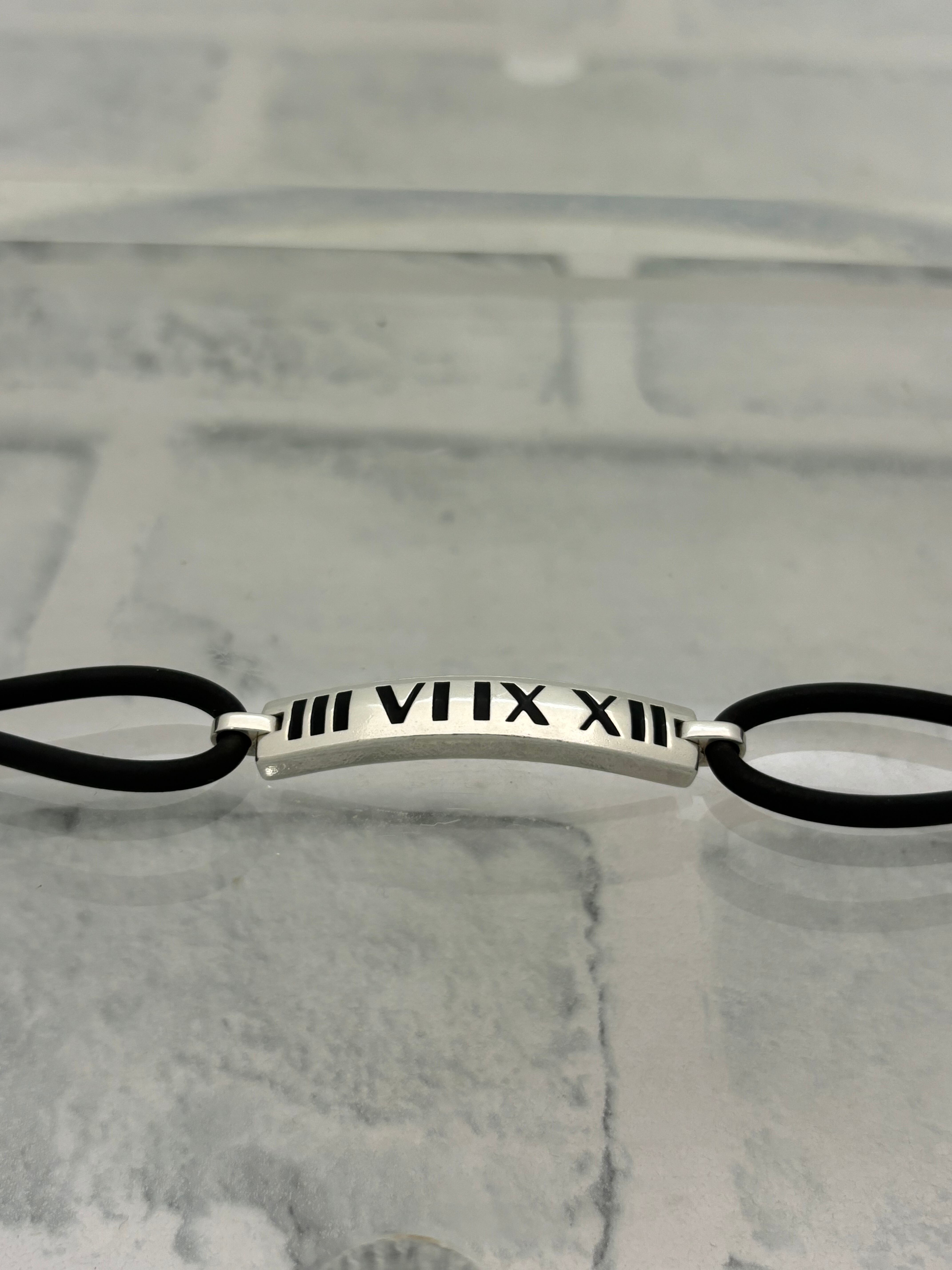 プレート部分と金具は925シルバー、チェーン部分はラバーを使用したIDブレスレット。プレート部分にはアトラスシリーズの特徴であるローマ数字がデザインされています。