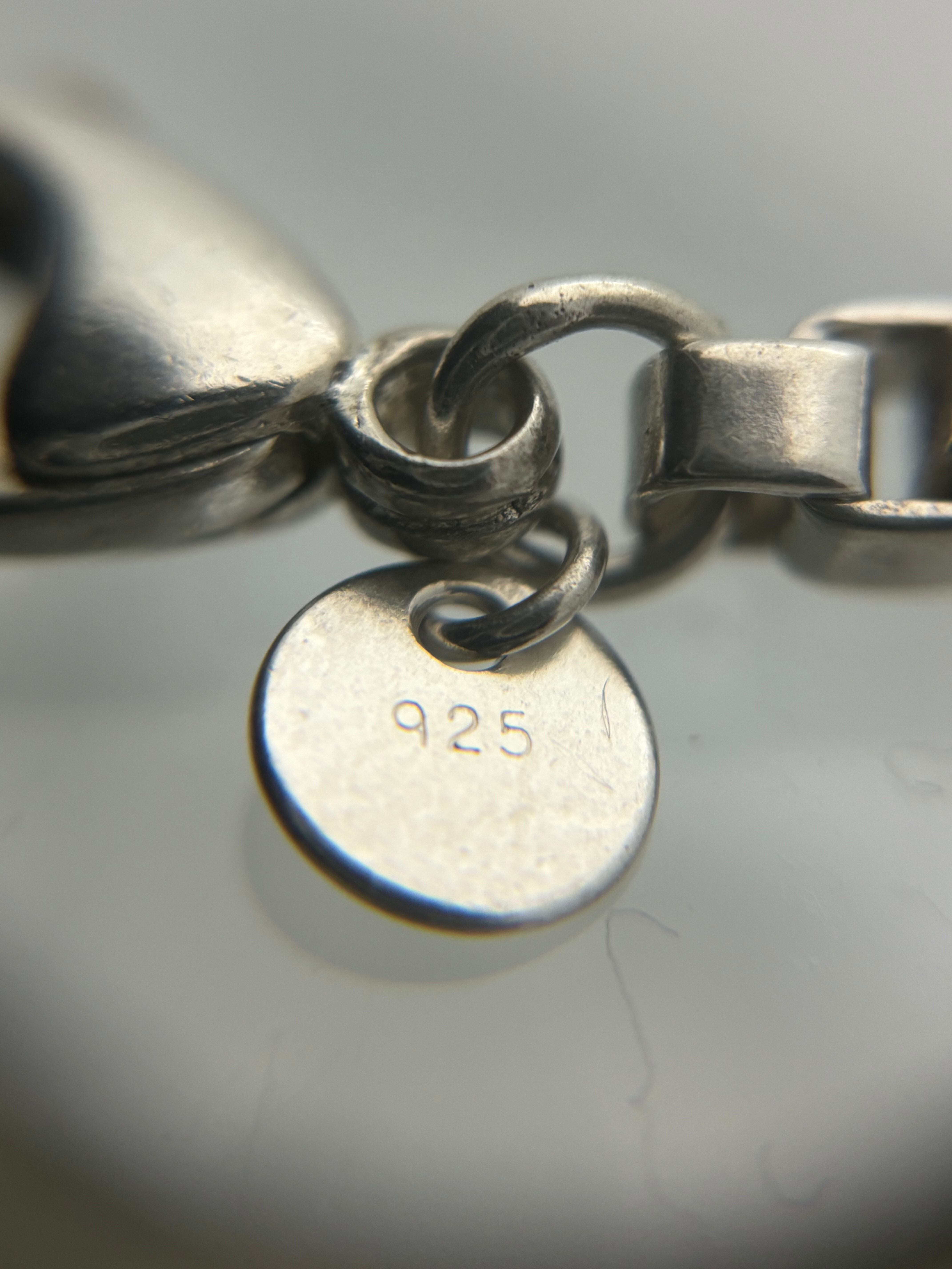均一にデザインされたスクエアデザインのコマを使用したリンクチェーンブレスレット。ティファニーの代表的なアイテムの一つで、現行でも販売され続けているベストセラーアイテムです。