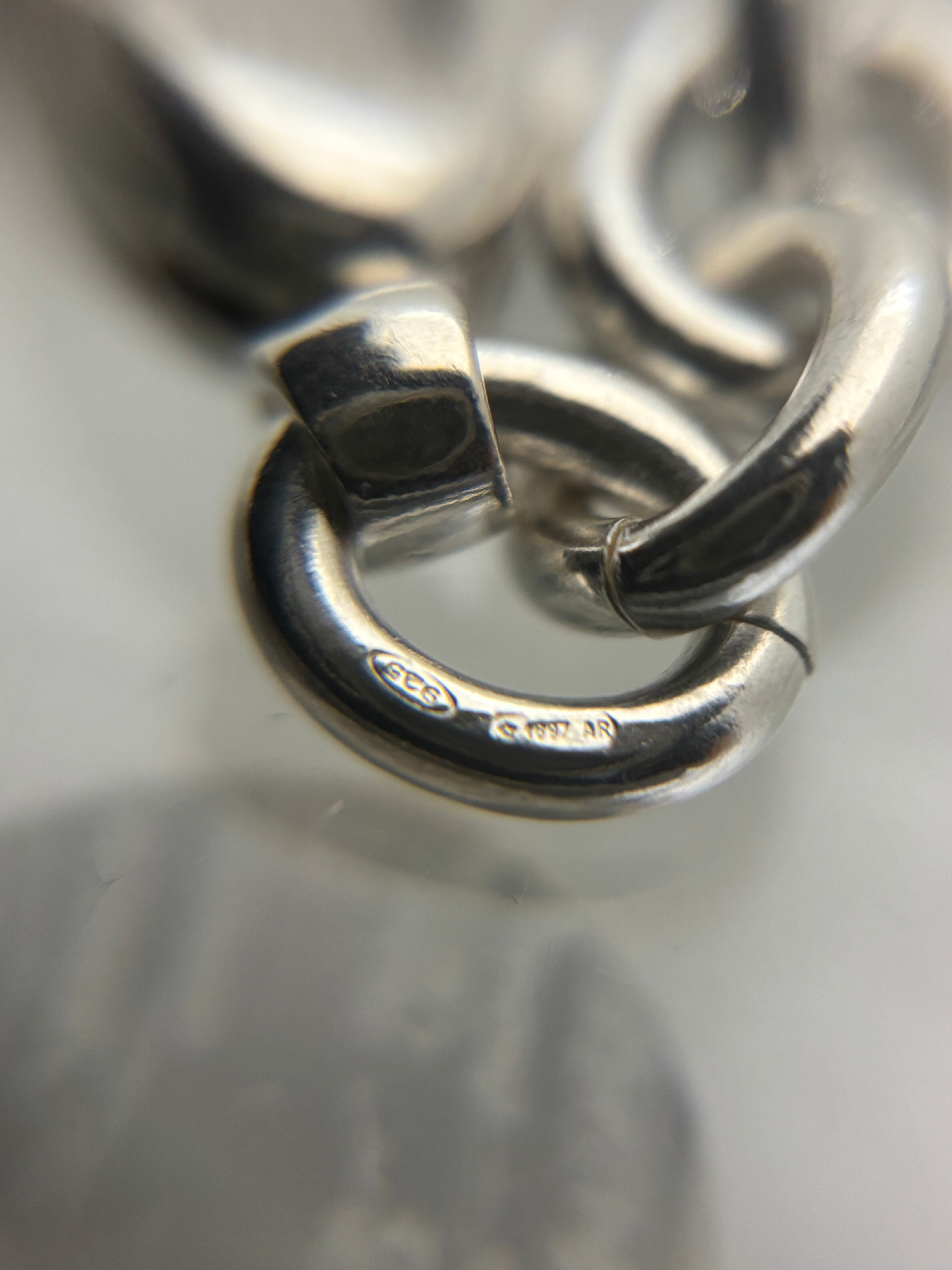 丸みを帯びた肉厚のコマが特徴的なリンクチェーンブレスレット。イタリアンシルバーを元にしたデザインが多いティファニーやグッチが得意とするデザインです。