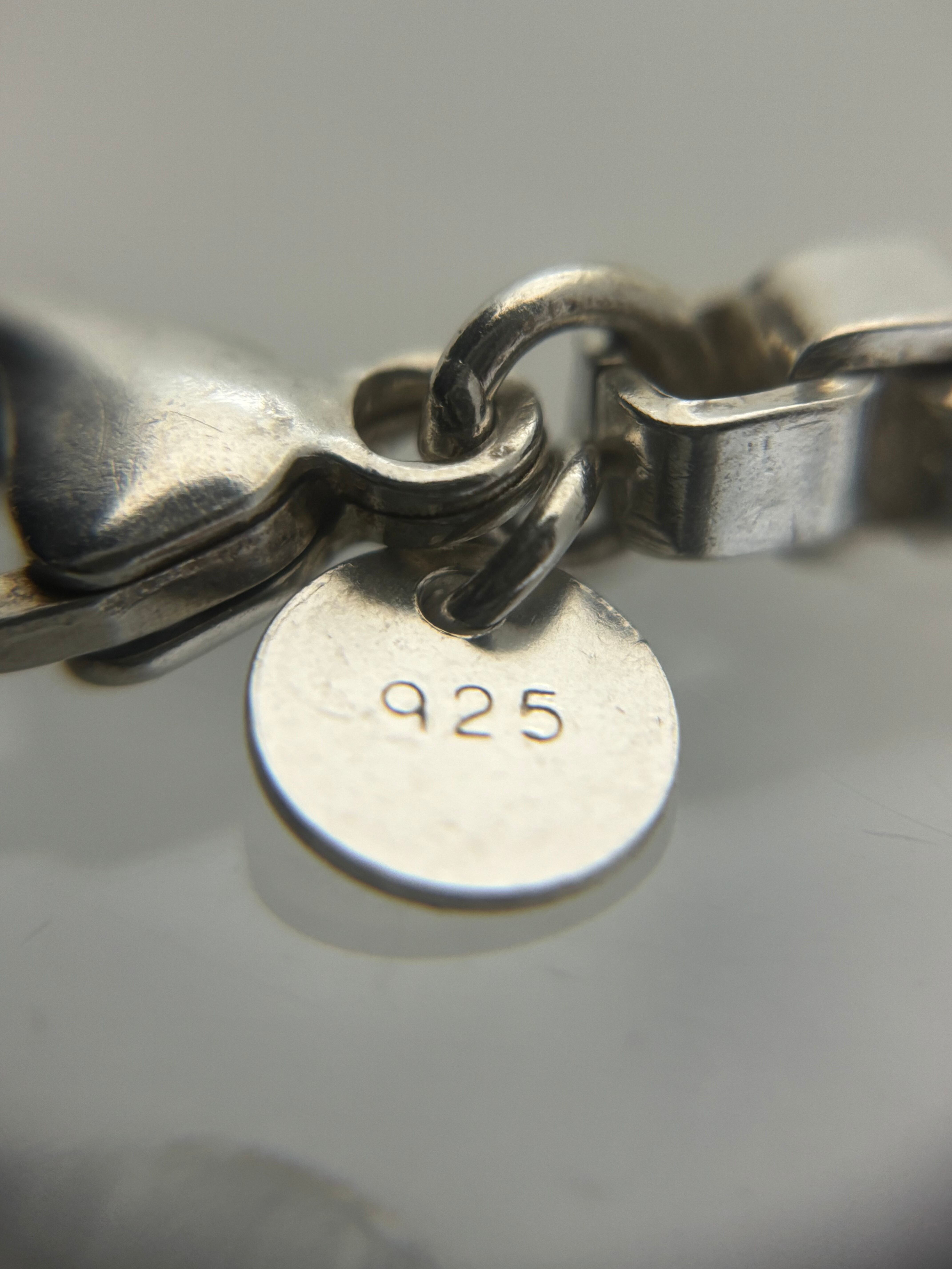 均一にデザインされたスクエアデザインのコマを使用したリンクチェーンブレスレット。ティファニーの代表的なアイテムの一つで、現行でも販売され続けているベストセラーアイテムです。